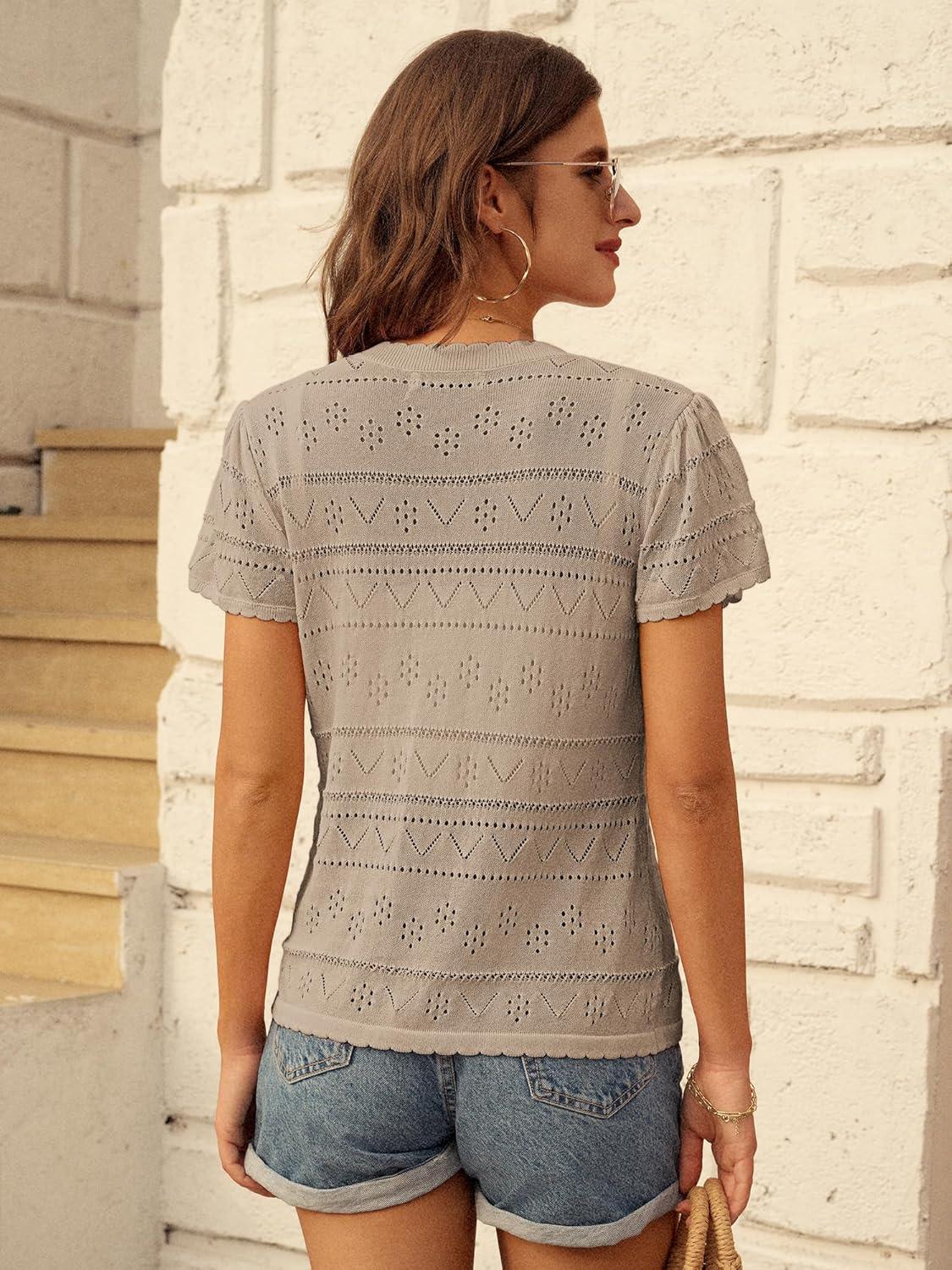GRACE KARIN Womens Short Sleeve Cardigan 2025 Summer Crochet Cardigans for Women Lightweight Shrugs Sweaters Tops(Beige)