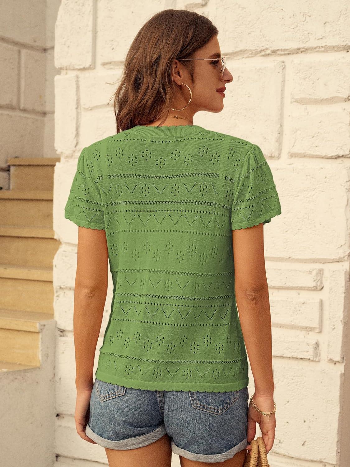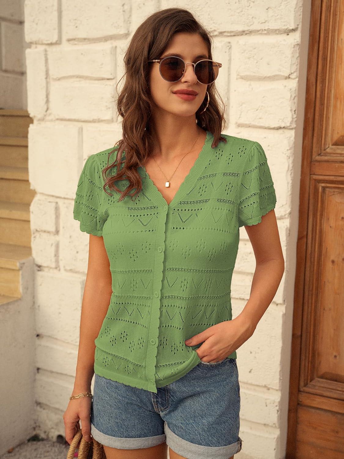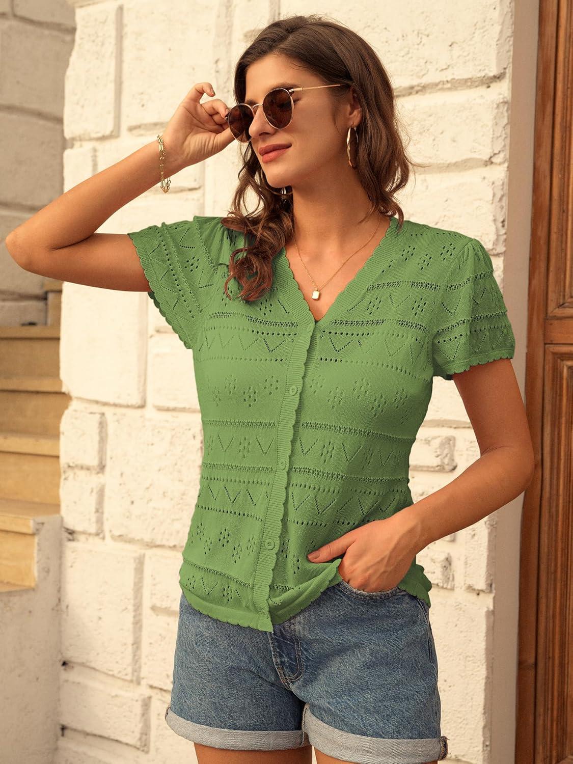 GRACE KARIN Womens Short Sleeve Cardigan 2025 Summer Crochet Cardigans for Women Lightweight Shrugs Sweaters Tops(Green)