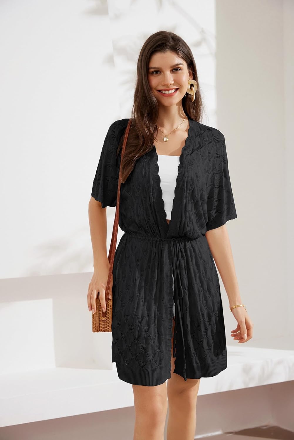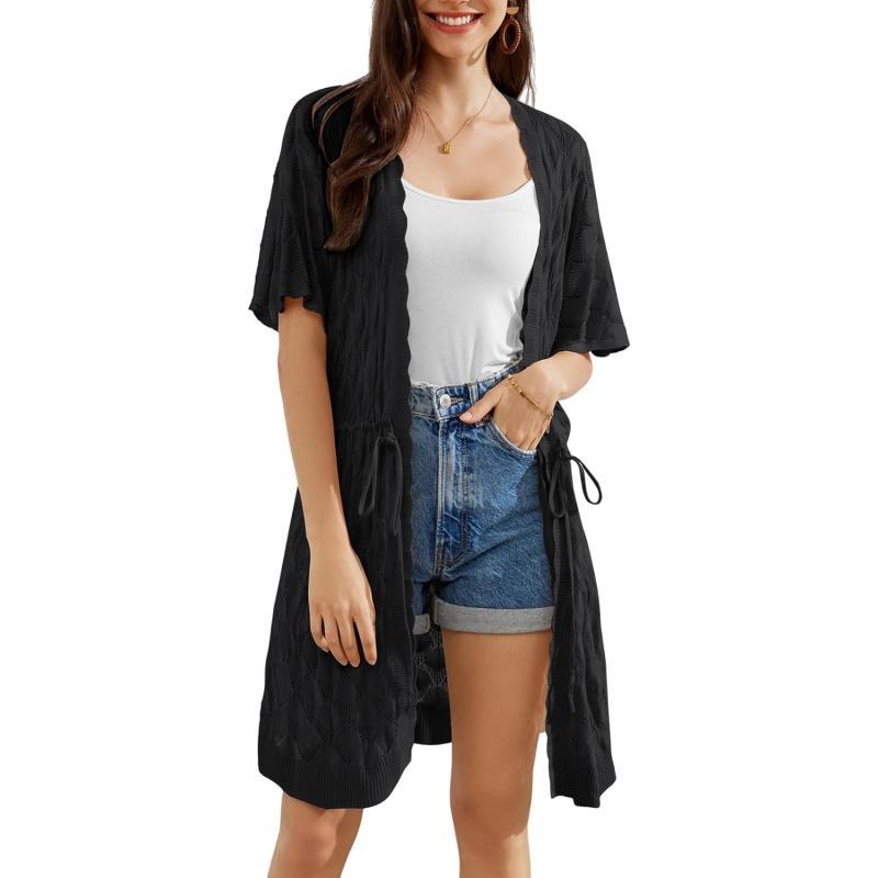 Be the first to review “GRACE KARIN Womens Short Sleeve Open Front Crochet Knit Cardigan Lightweight Summer Kimono Boho Cardigans with Side Slit(Black)”