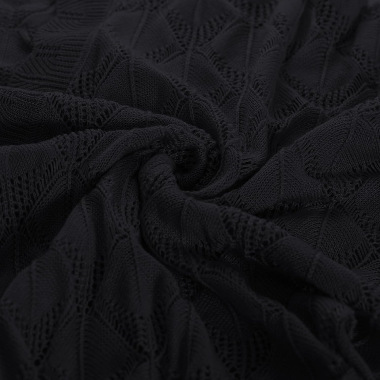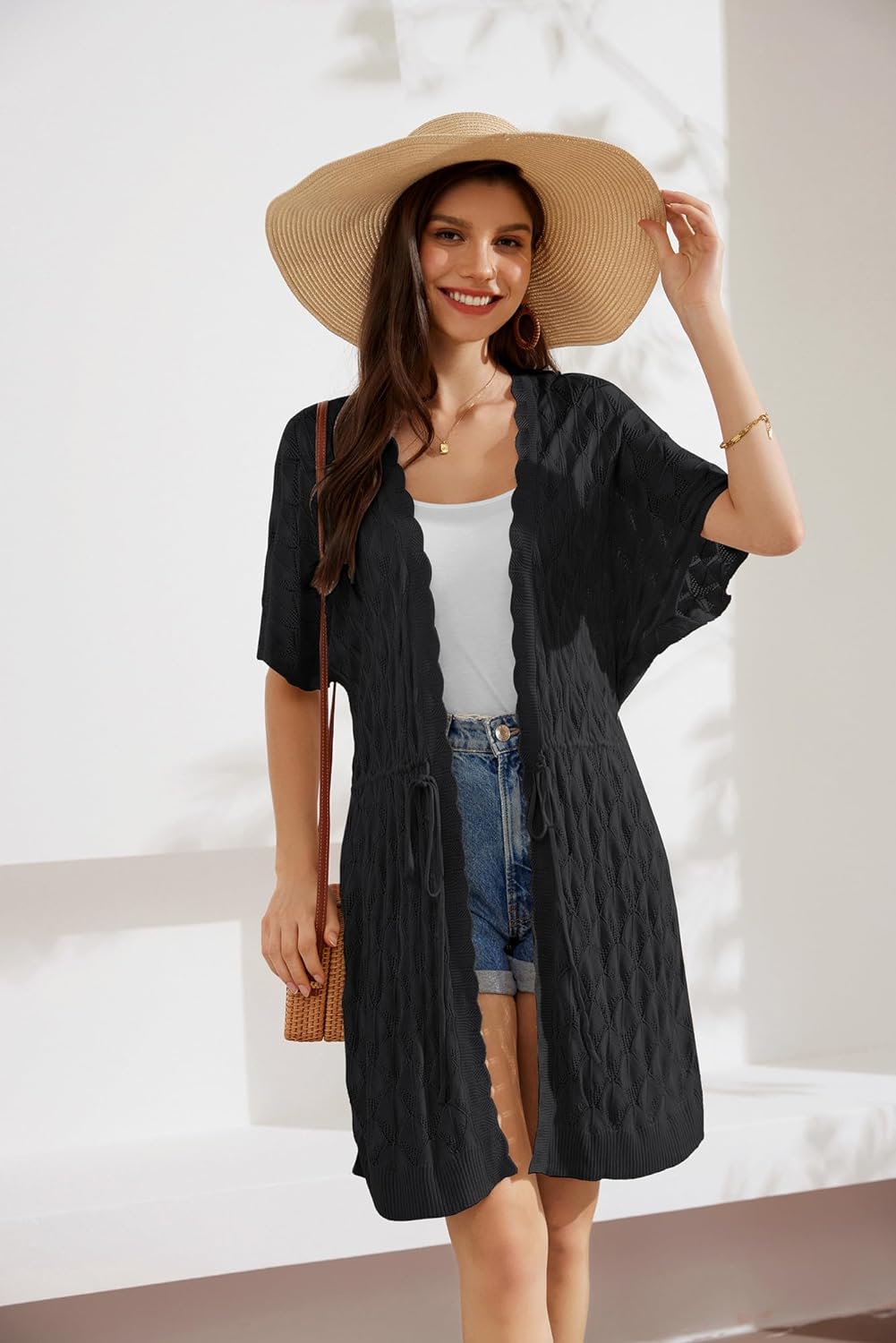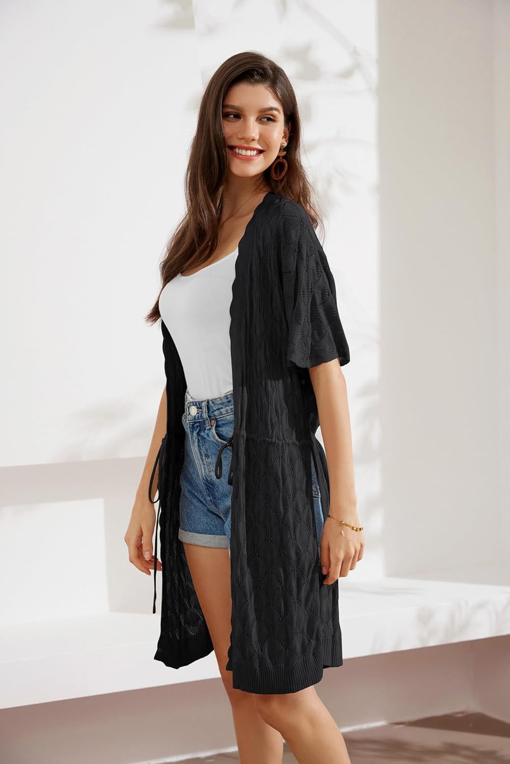 GRACE KARIN Womens Short Sleeve Open Front Crochet Knit Cardigan Lightweight Summer Kimono Boho Cardigans with Side Slit(Black)