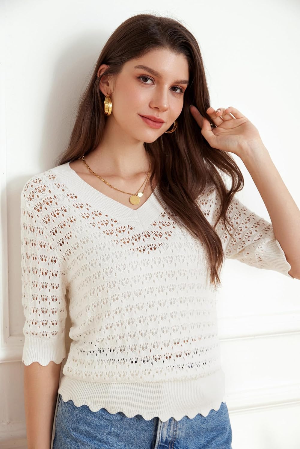 Score big on GRACE KARIN Womens Short Sleeve Sweaters Tops V Neck Pullover Knit Shirts Crochet Hollow Out Blouses and accessories during our BOGO sale. Buy one, get one 50% off!