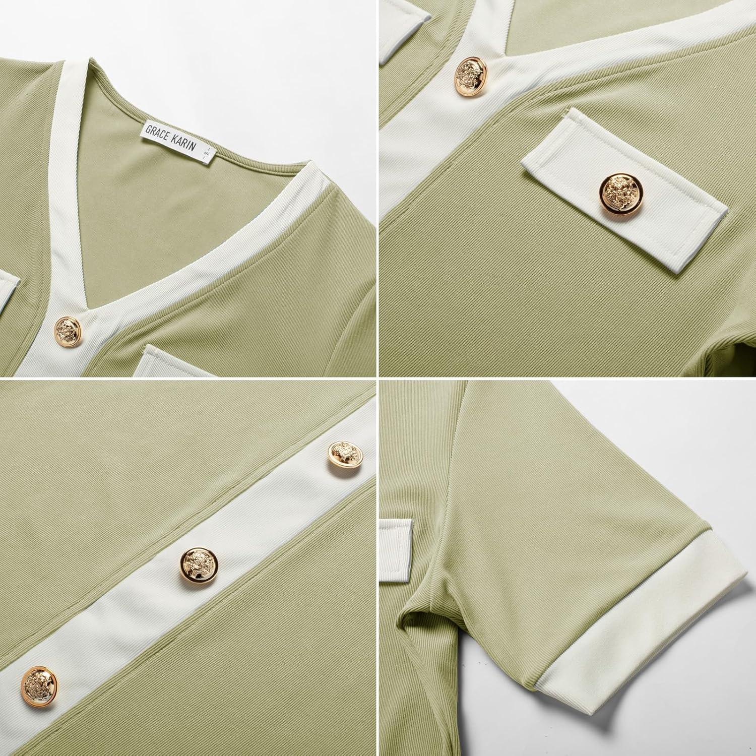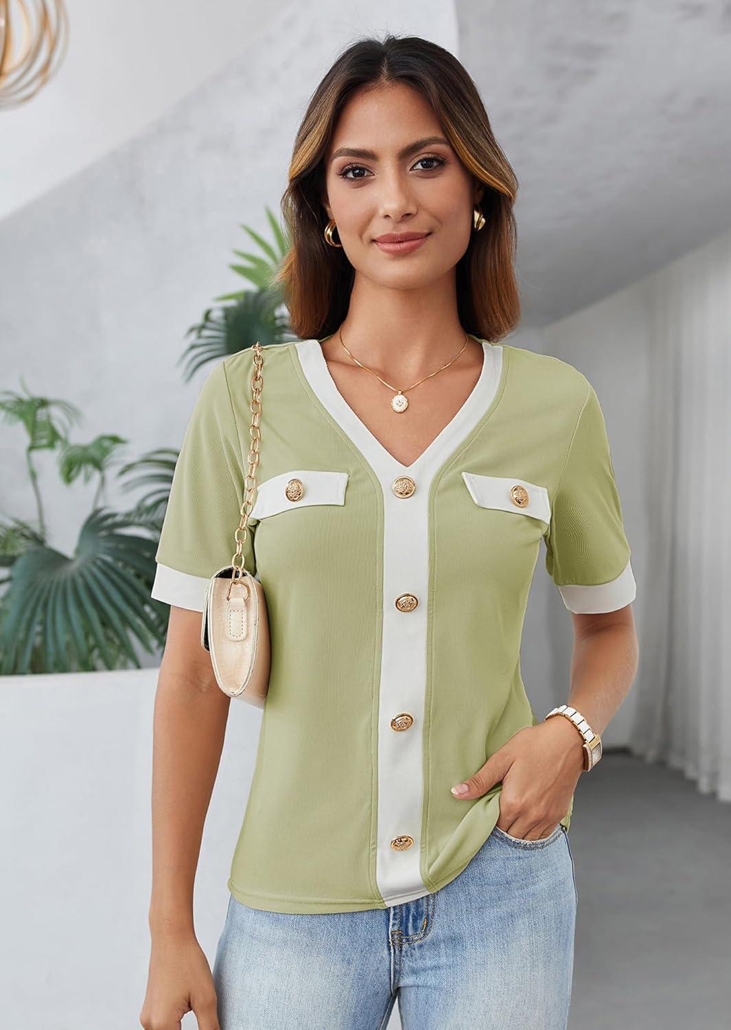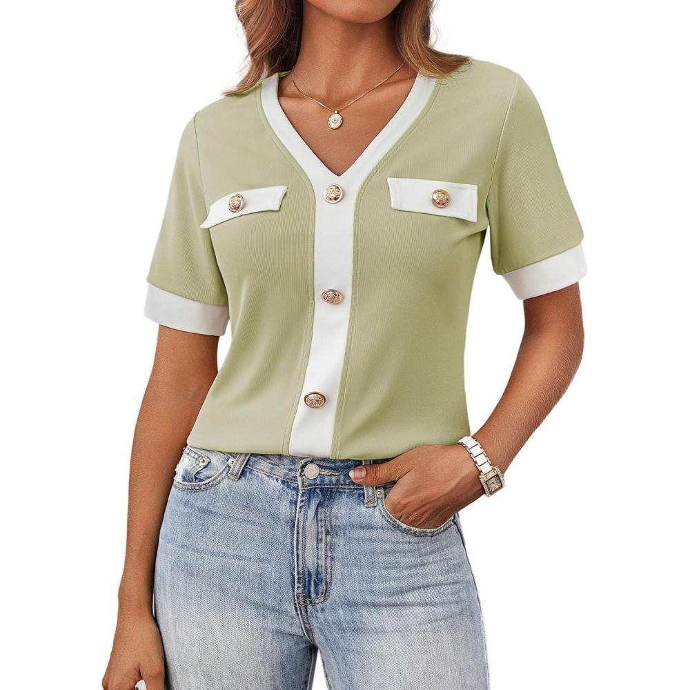 Our clearance section features the best deals on GRACE KARIN Women’s Short Sleeve V Neck Summer Tops Ribbed Knit Slim Fitted Work Shirts Color Block Button Casual Blouses(Light Green) and accessories. Check it out now!