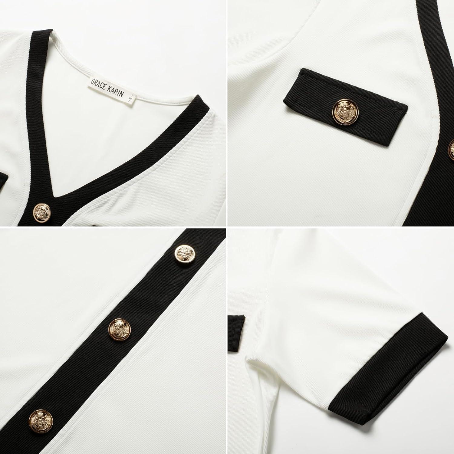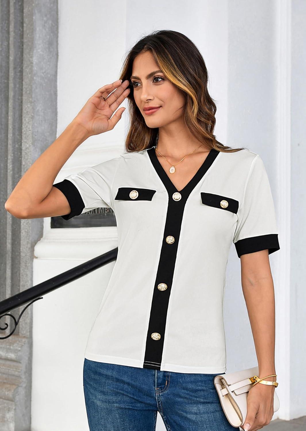 Don’t miss out on our limited-time offer: get a free {accessory} with your purchase of GRACE KARIN Women’s Short Sleeve V Neck Summer Tops Ribbed Knit Slim Fitted Work Shirts Color Block Button Casual Blouses(White).