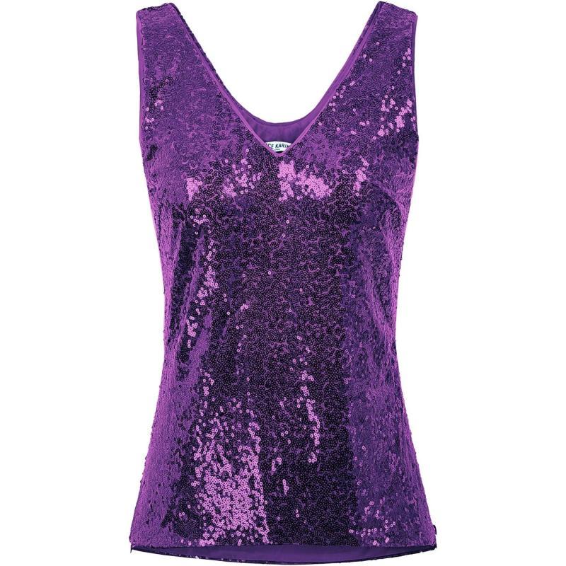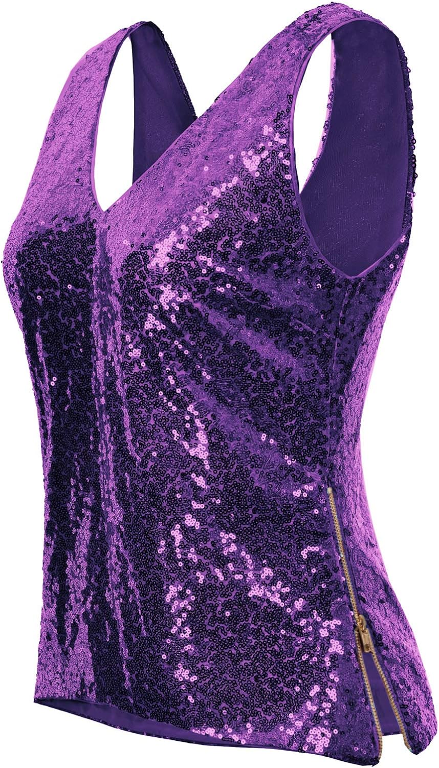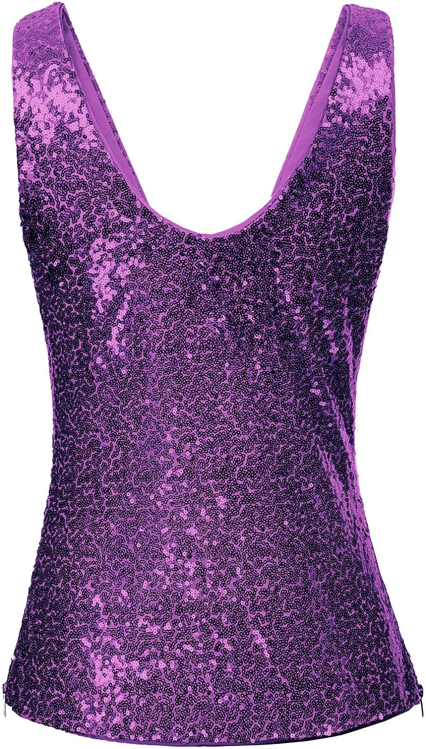GRACE KARIN Women's Sleeveless Sparkle Sequin Tops V-Neck Cami Sexy Club Tank Top(Purple)