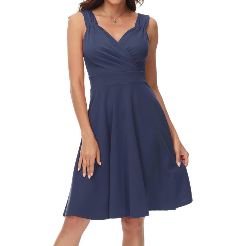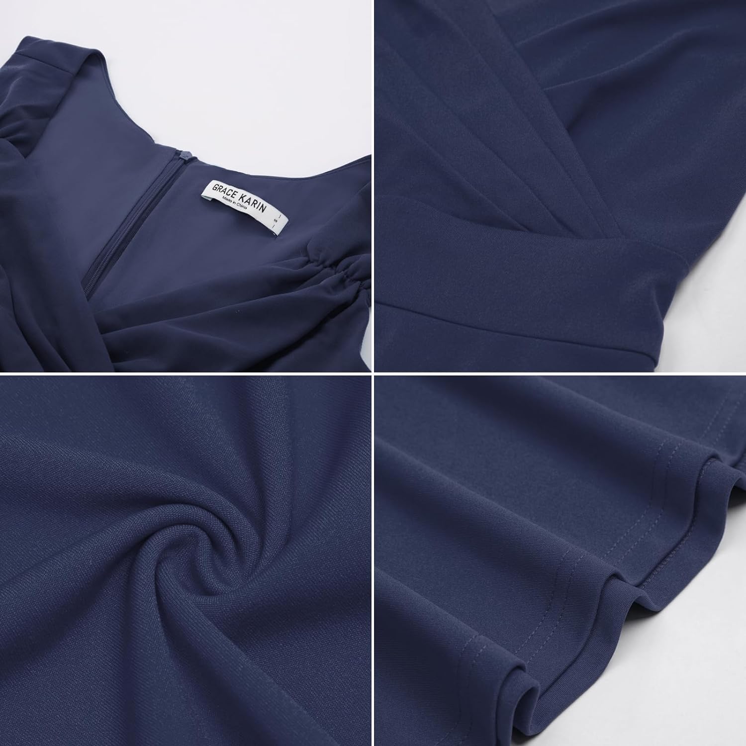 GRACE KARIN Women's Sleeveless Wrap V-Neck A-line Bridesmaid Cocktail Party Dress(Dark Blue)
