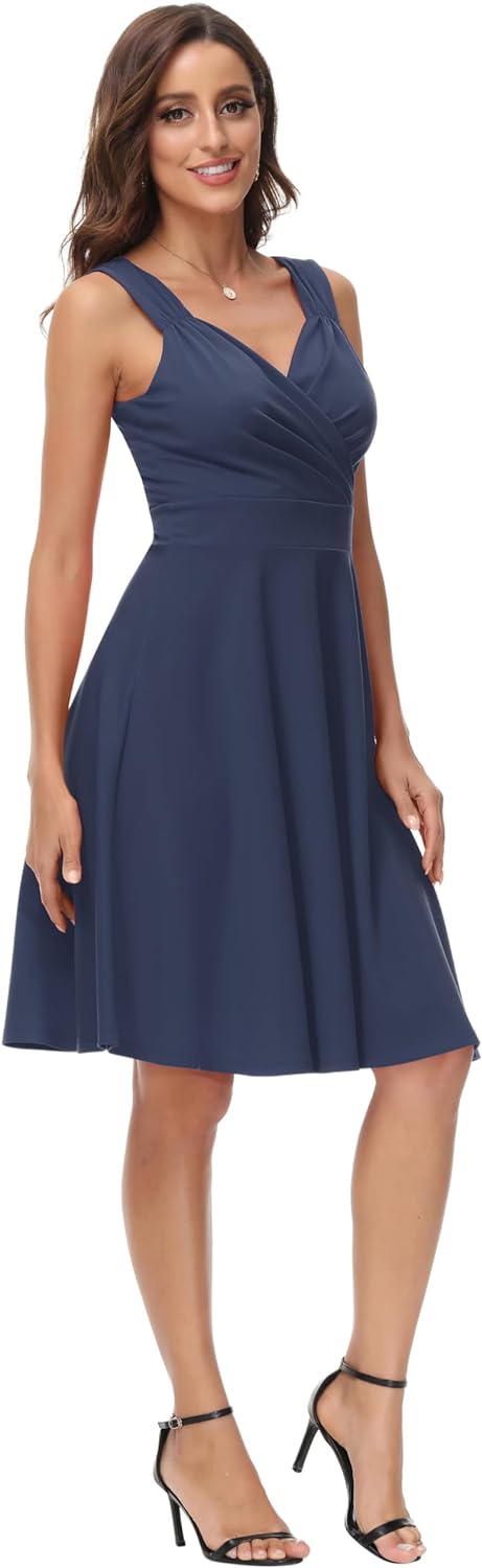 GRACE KARIN Women’s Sleeveless Wrap V-Neck A-line Bridesmaid Cocktail Party Dress(Dark Blue)