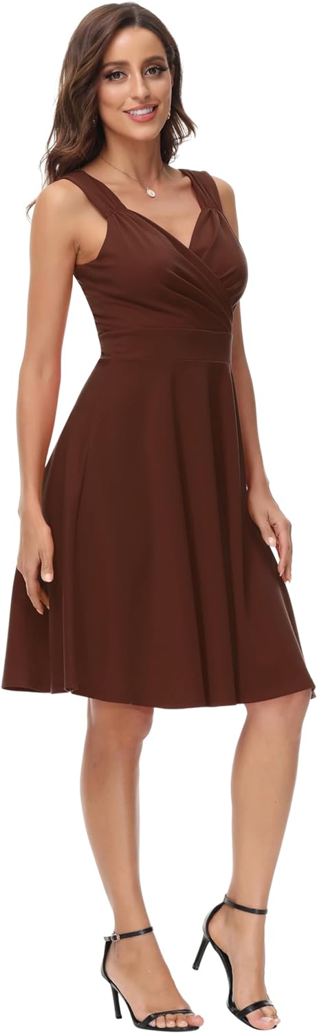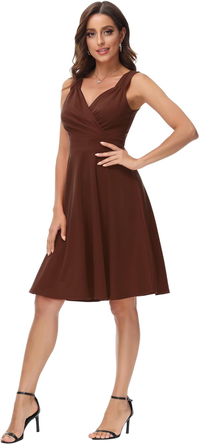 GRACE KARIN Women’s Sleeveless Wrap V-Neck A-line Bridesmaid Cocktail Party Dress(Dark Brown)