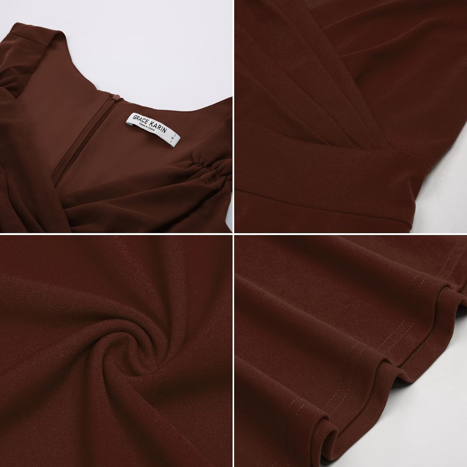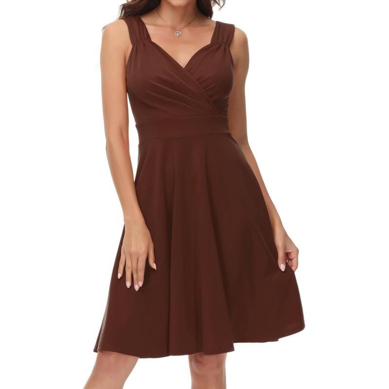 GRACE KARIN Women's Sleeveless Wrap V-Neck A-line Bridesmaid Cocktail Party Dress(Dark Brown)