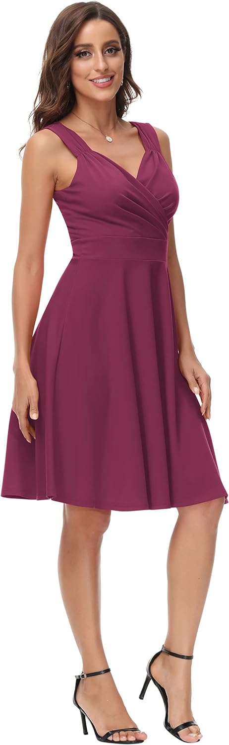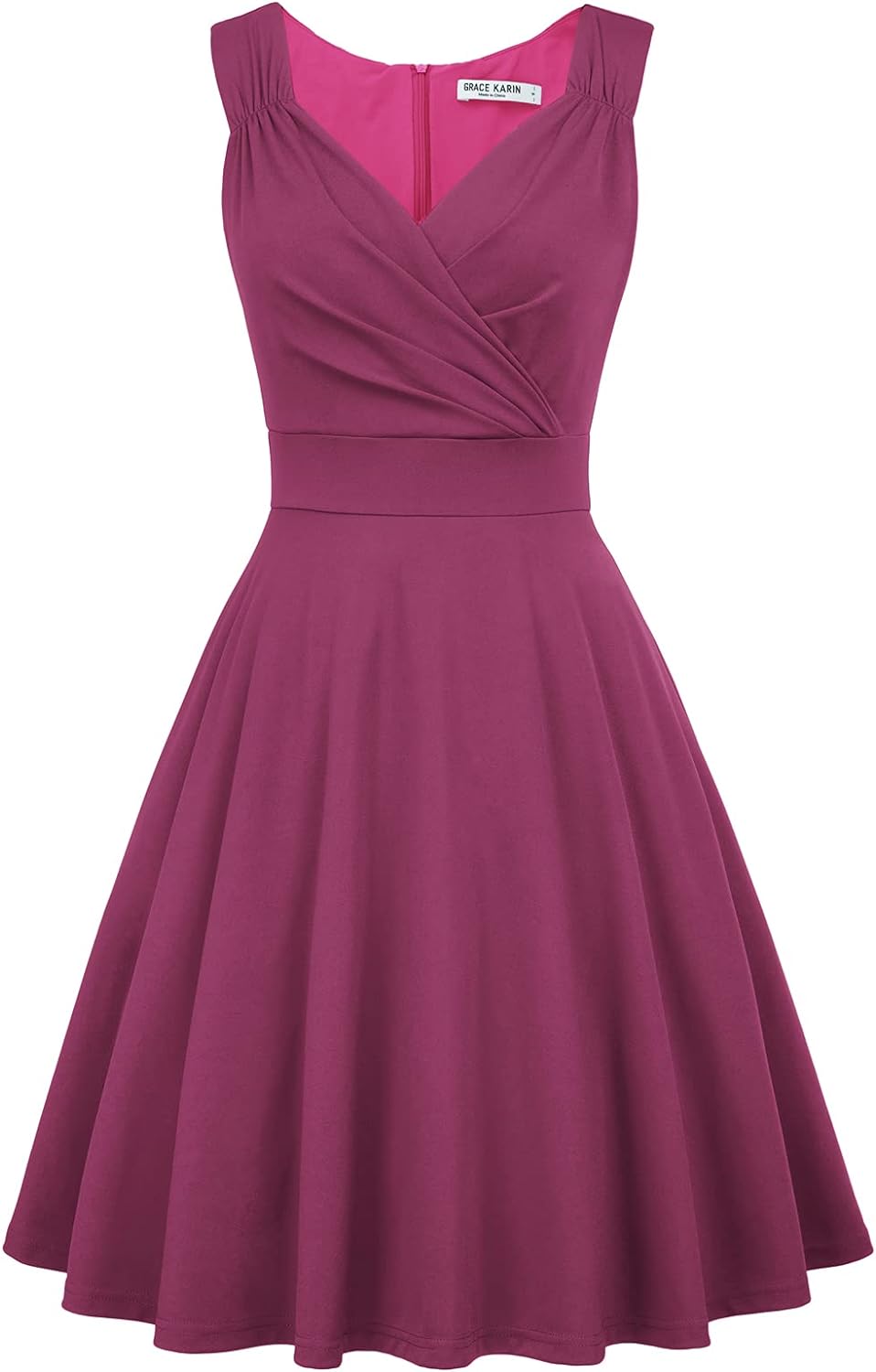GRACE KARIN Women’s Sleeveless Wrap V-Neck A-line Bridesmaid Cocktail Party Dress(Magenta)