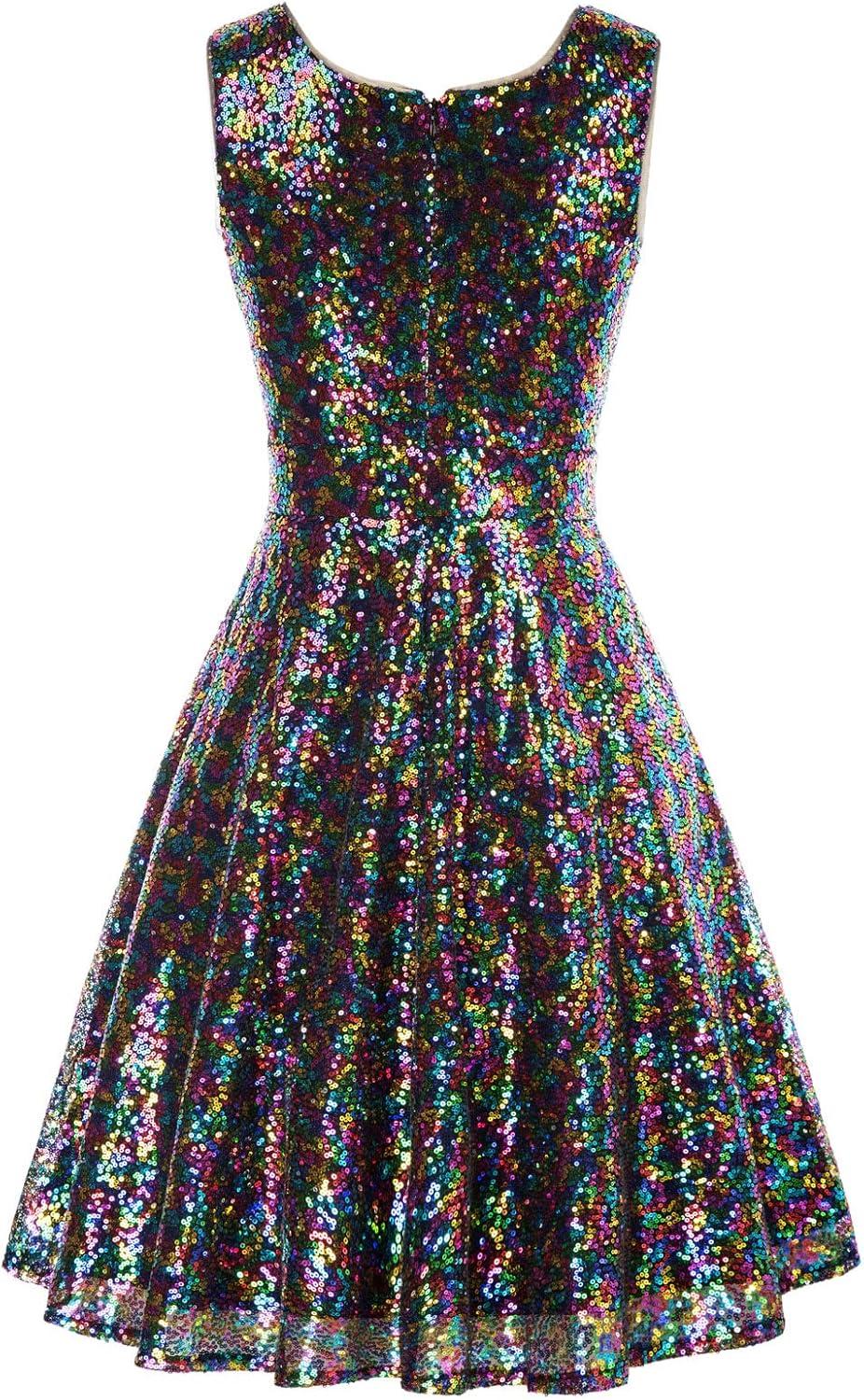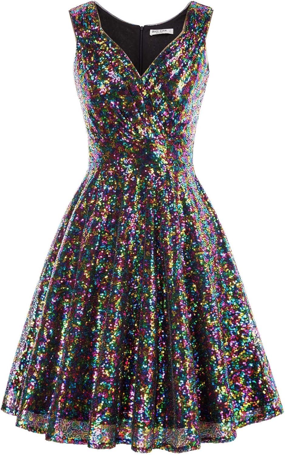 GRACE KARIN Women's Sleeveless Wrap V-Neck A-line Bridesmaid Cocktail Party Dress(Multicolor-2(sequin))
