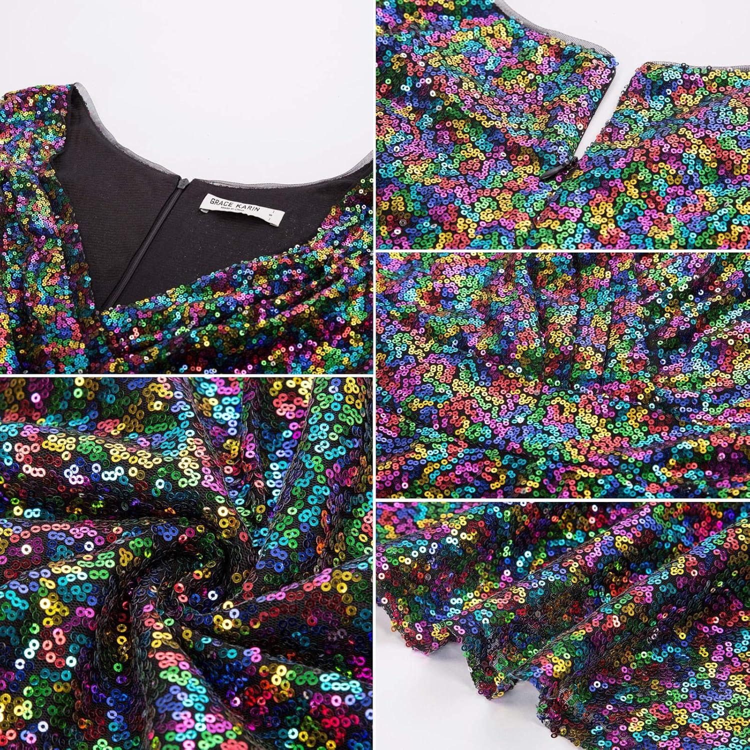 GRACE KARIN Women’s Sleeveless Wrap V-Neck A-line Bridesmaid Cocktail Party Dress(Multicolor-2(sequin))