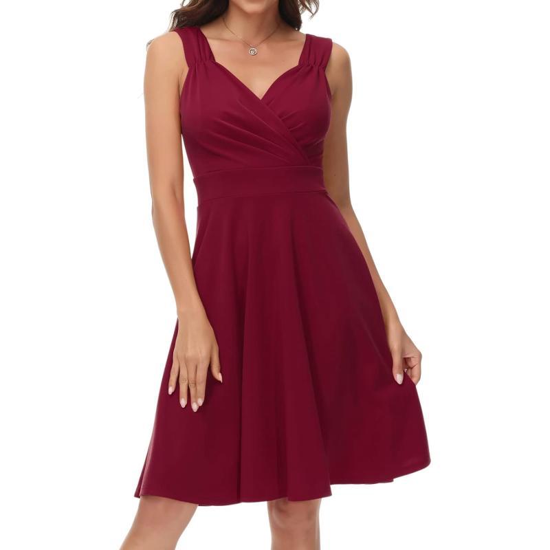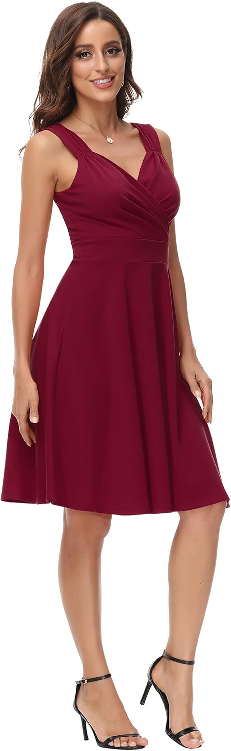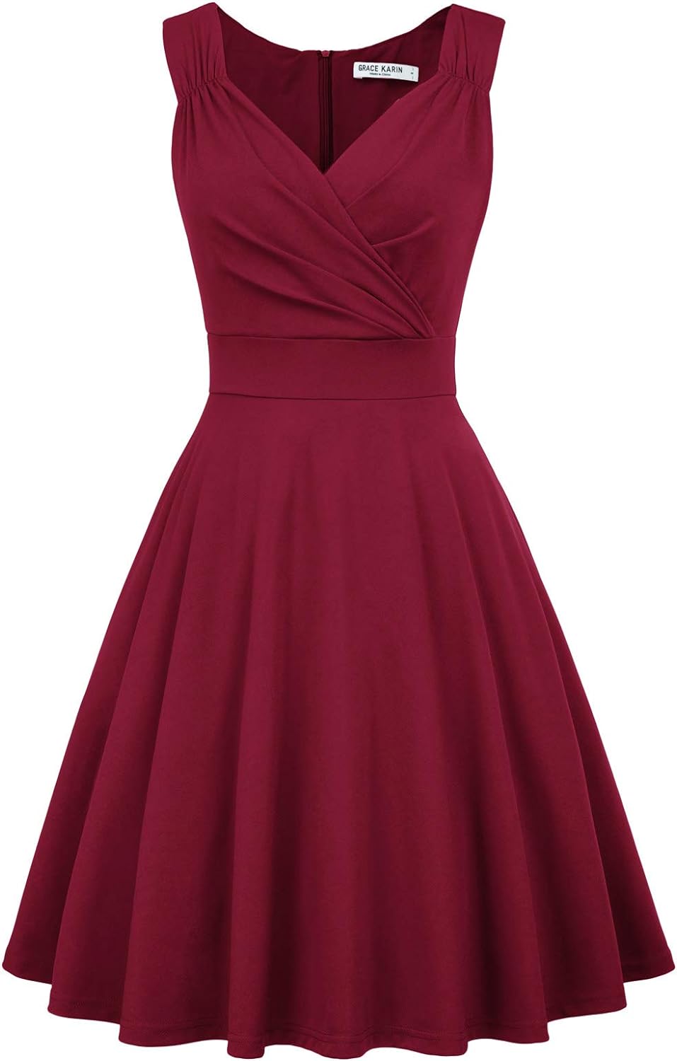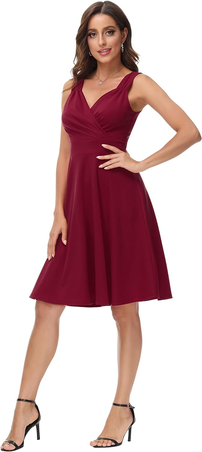 GRACE KARIN Women's Sleeveless Wrap V-Neck A-line Bridesmaid Cocktail Party Dress(Wine Red)
