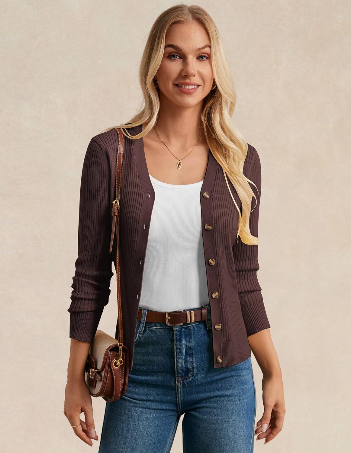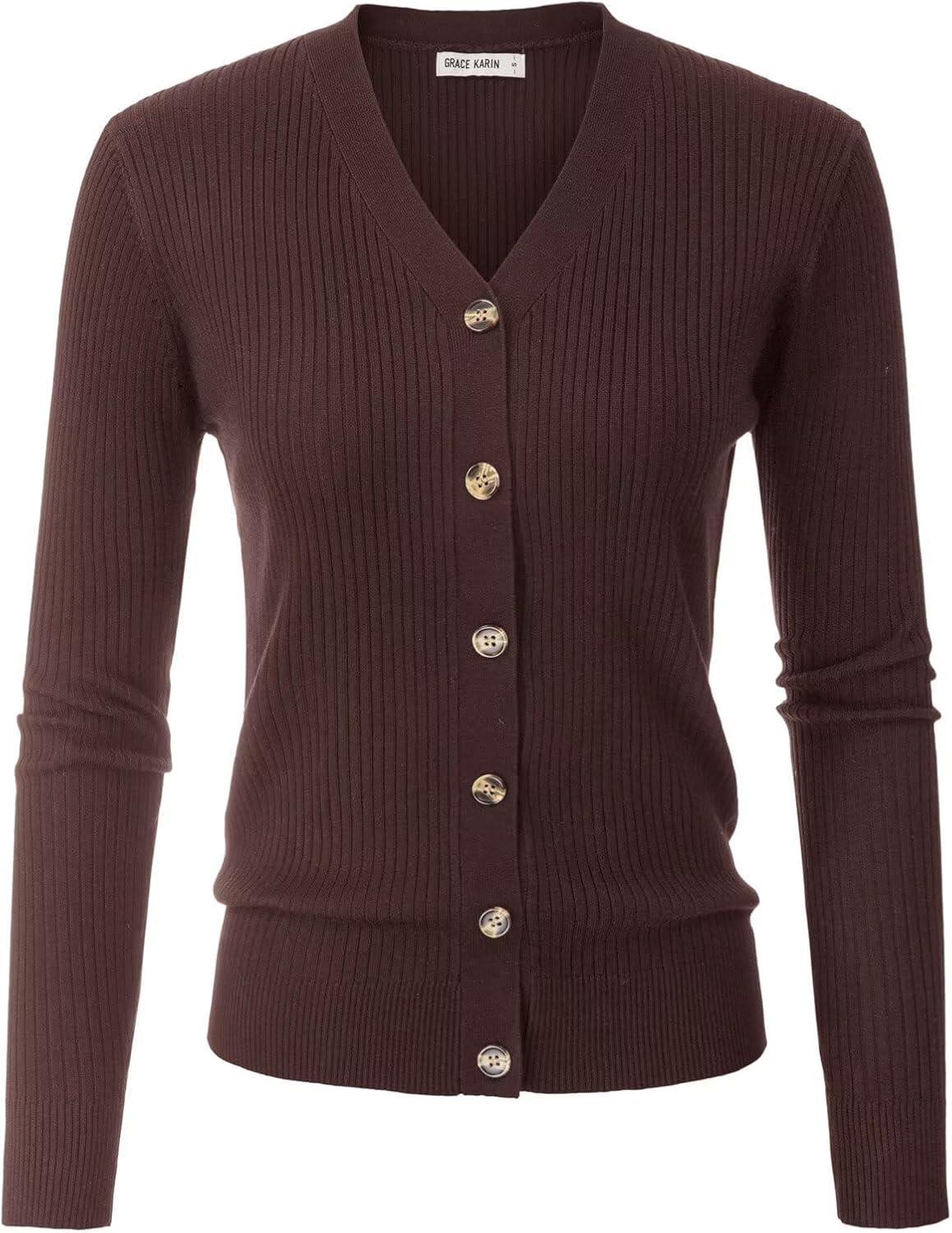 GRACE KARIN Women’s Soft Knit Cardigan Sweater – Long Sleeve V-Neck Button Up for Business Casual & Lounge Wear(Coffee)