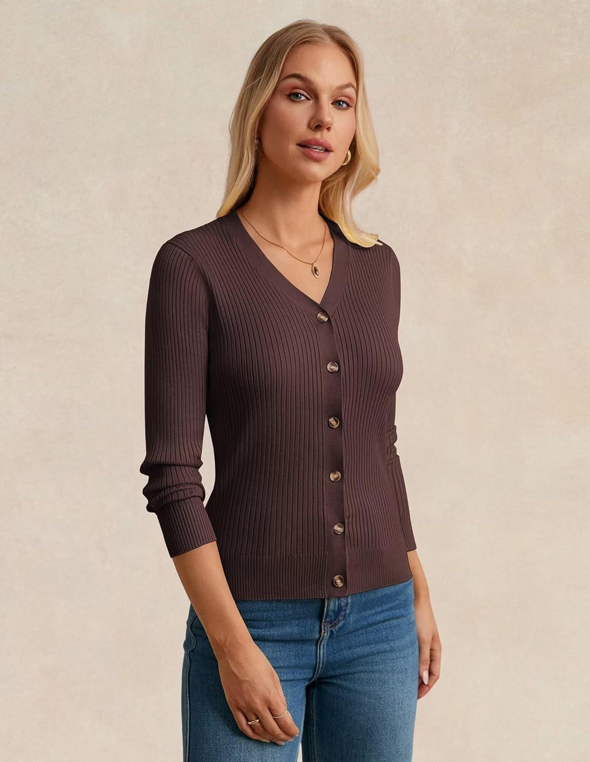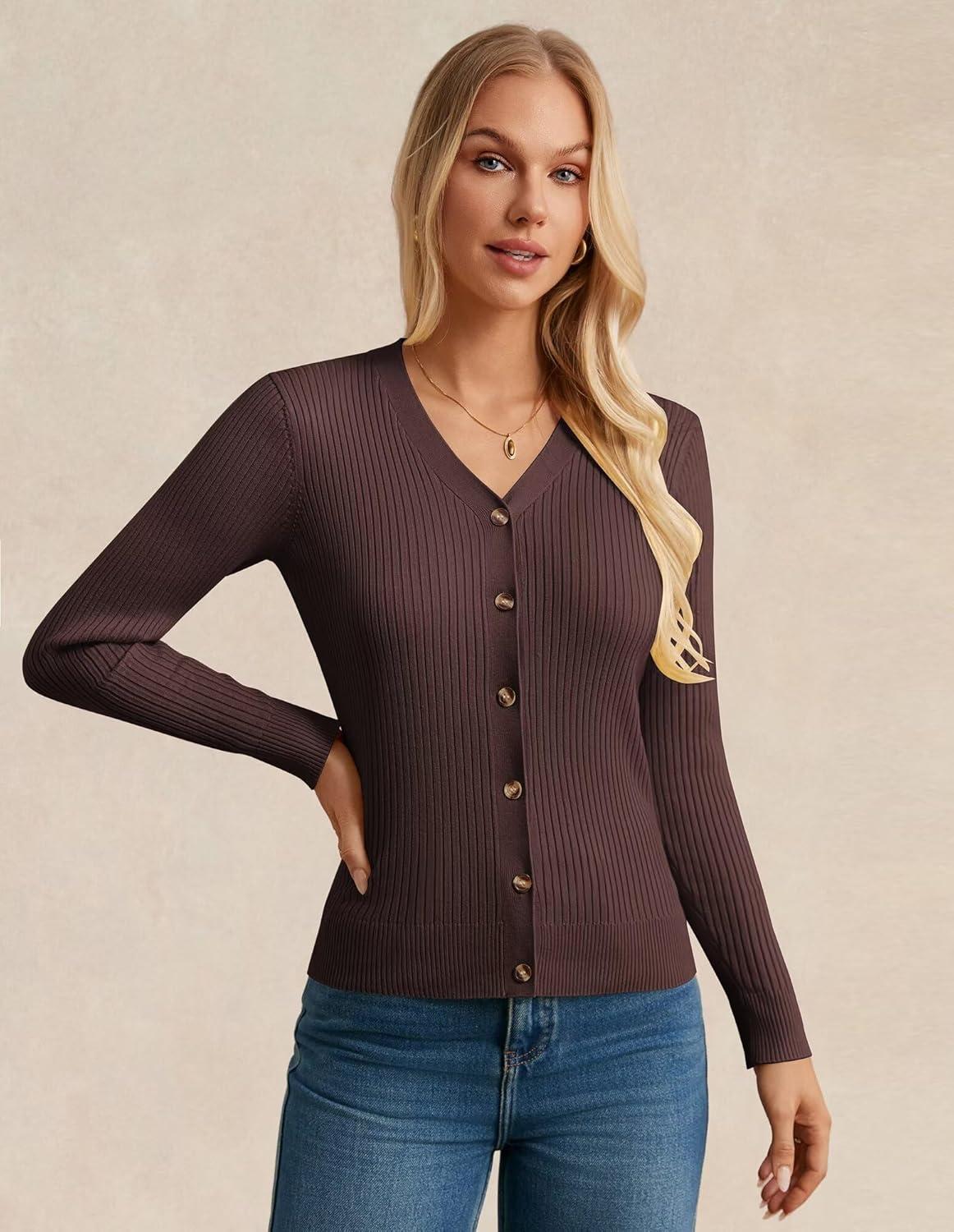 GRACE KARIN Women's Soft Knit Cardigan Sweater - Long Sleeve V-Neck Button Up for Business Casual & Lounge Wear(Coffee)