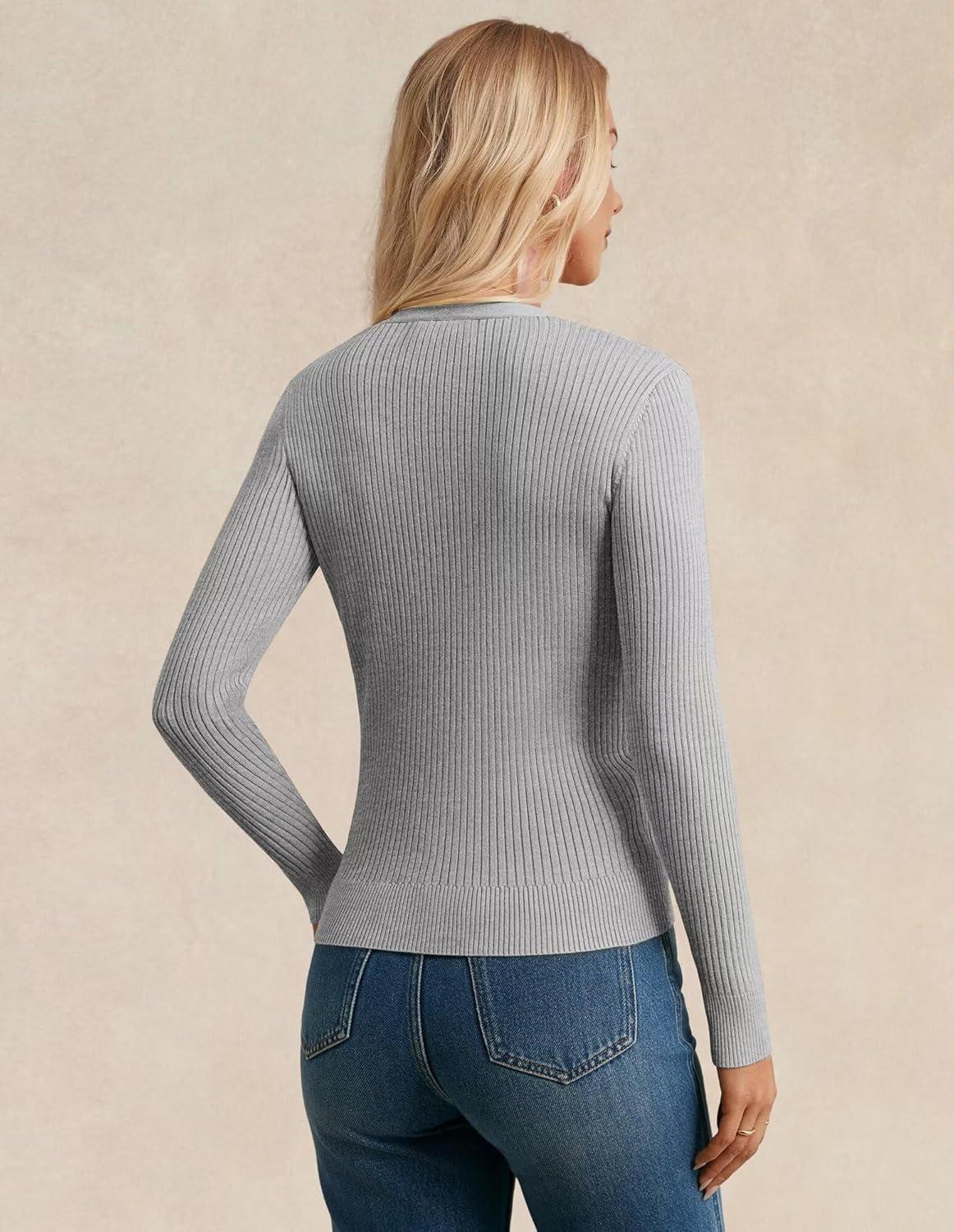 GRACE KARIN Women's Soft Knit Cardigan Sweater - Long Sleeve V-Neck Button Up for Business Casual & Lounge Wear(Flower Grey)