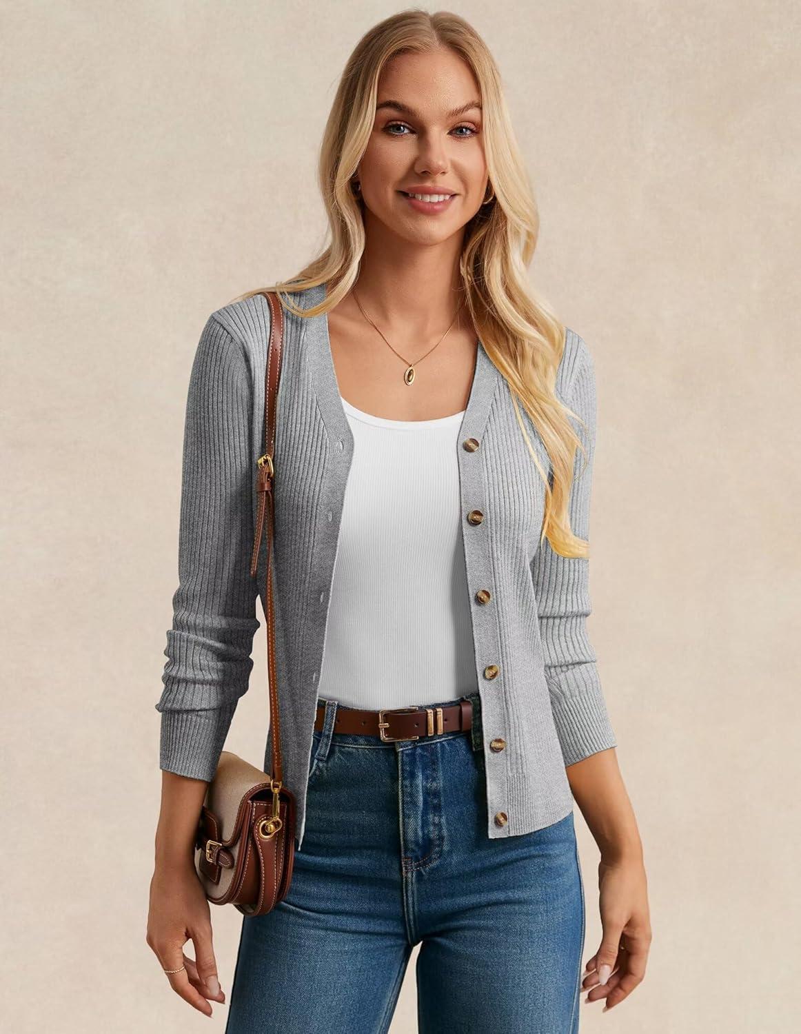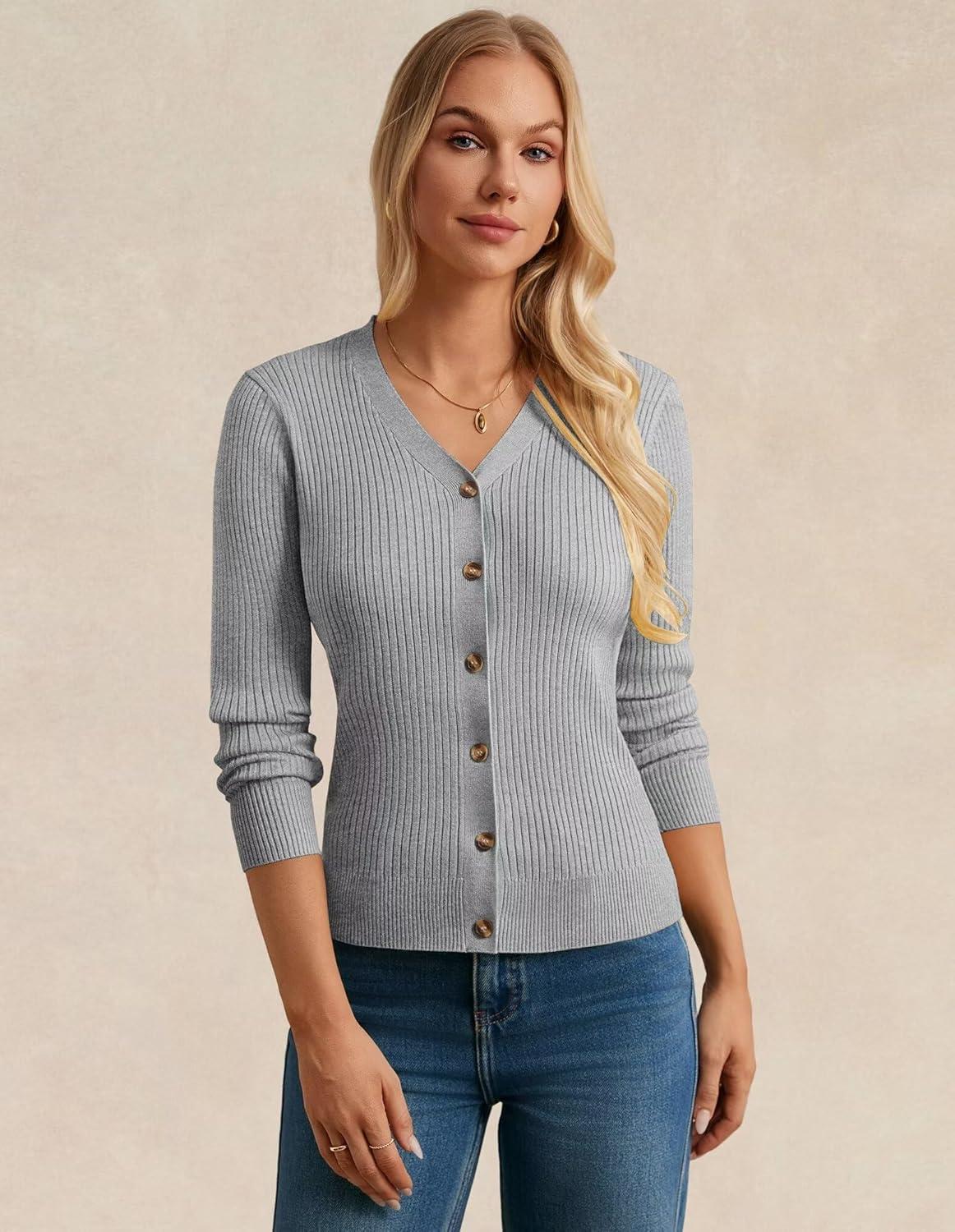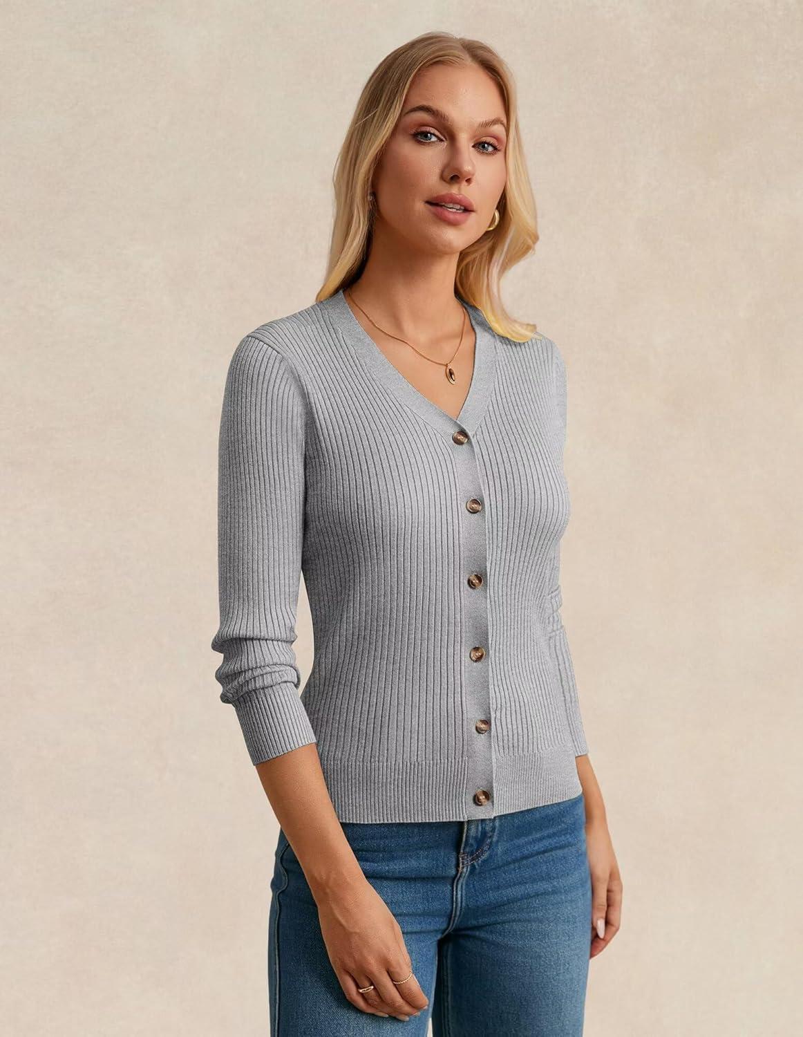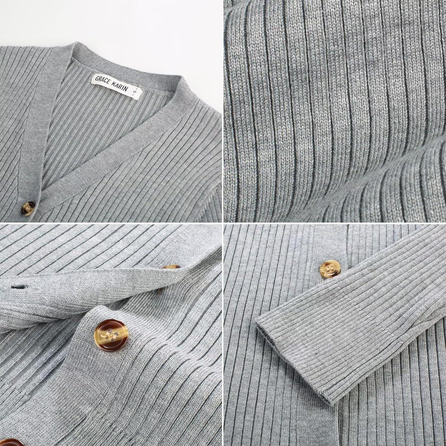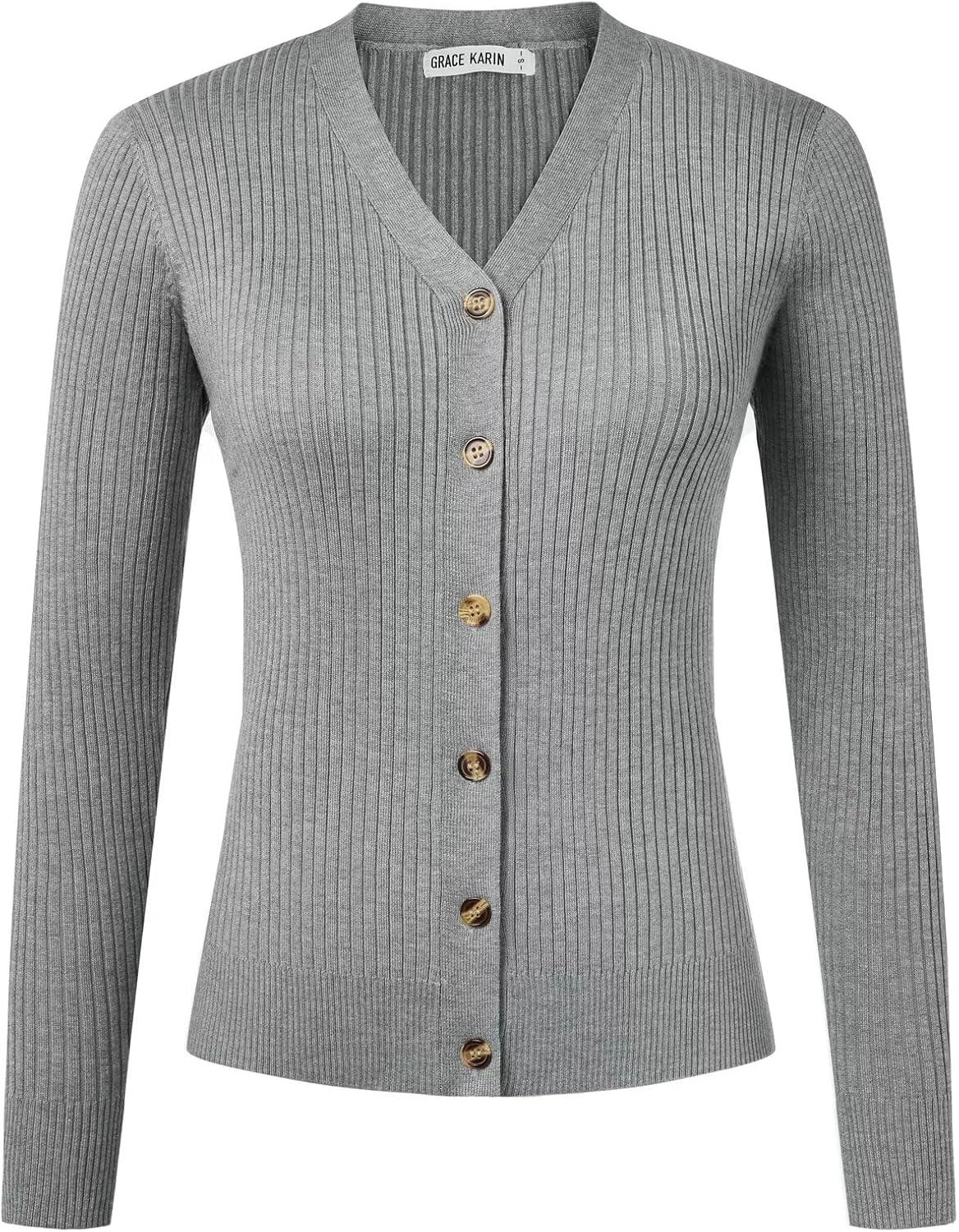 imageGRACE KARIN Womens Soft Knit Cardigan Sweater  Long Sleeve VNeck Button Up for Business Casual ampamp Lounge WearFlower Grey