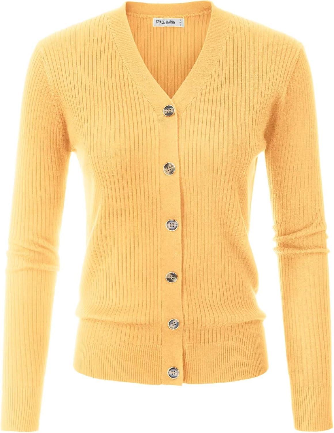 GRACE KARIN Women’s Soft Knit Cardigan Sweater – Long Sleeve V-Neck Button Up for Business Casual & Lounge Wear(Mid Yellow)