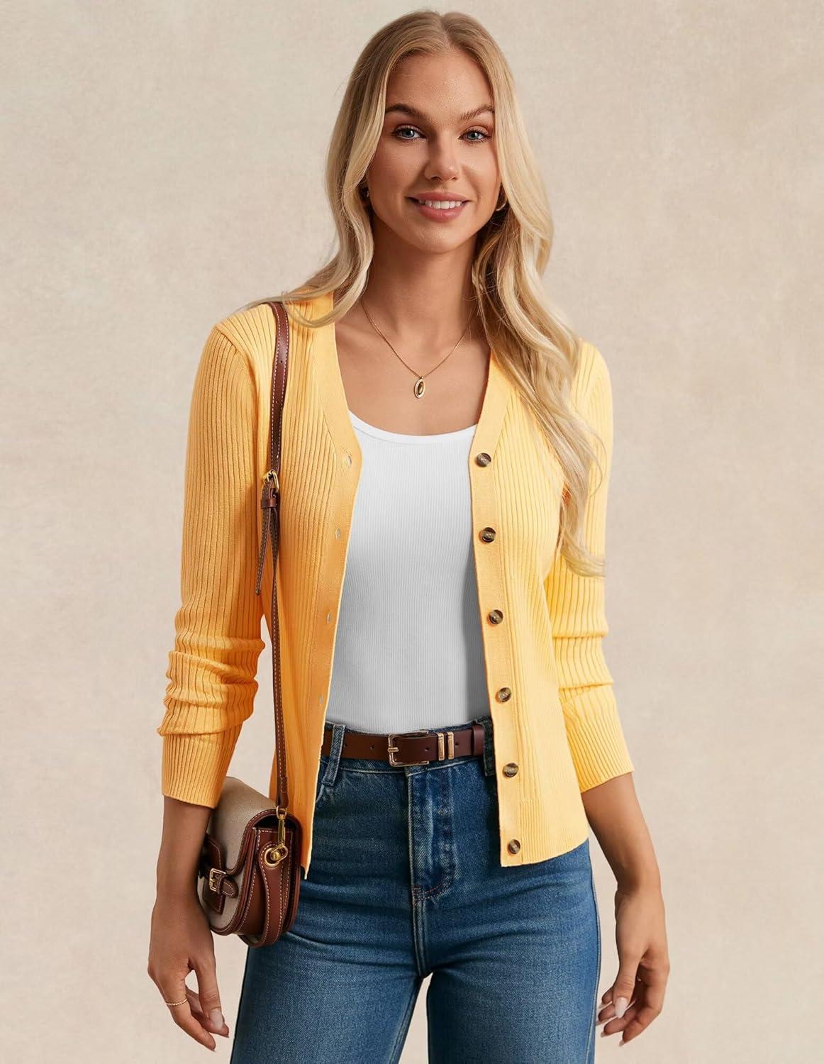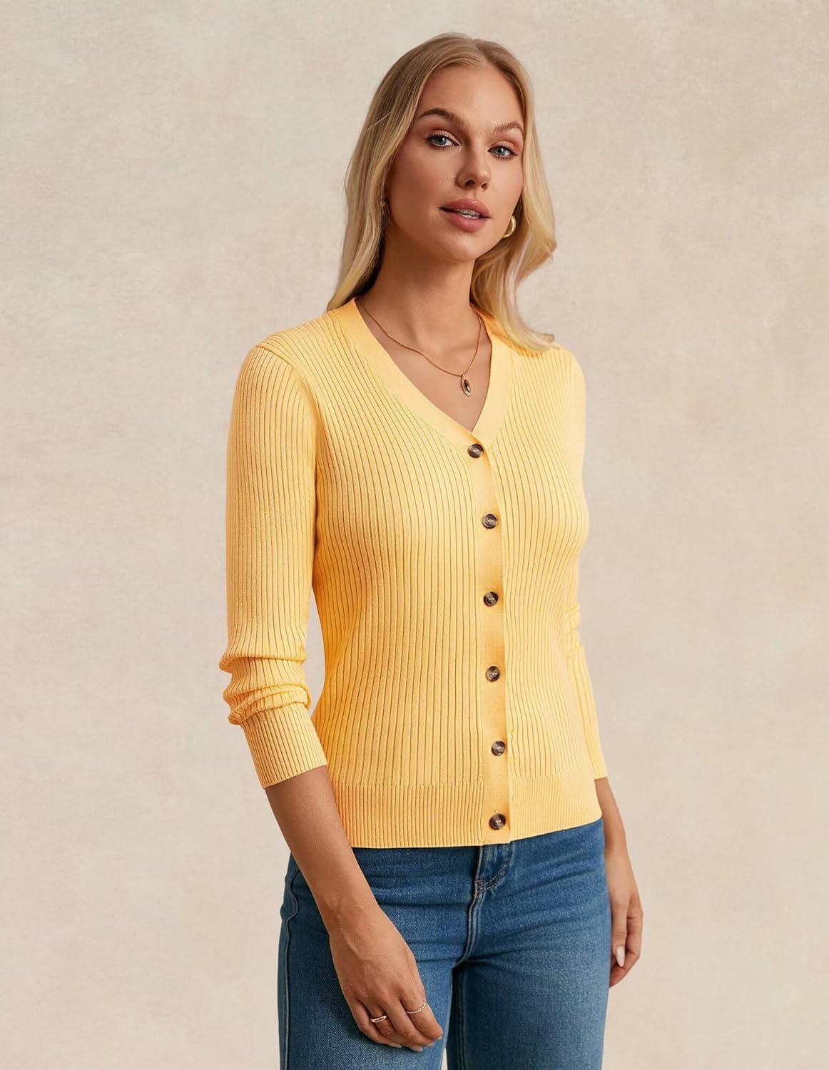 imageGRACE KARIN Womens Soft Knit Cardigan Sweater  Long Sleeve VNeck Button Up for Business Casual ampamp Lounge WearMid Yellow