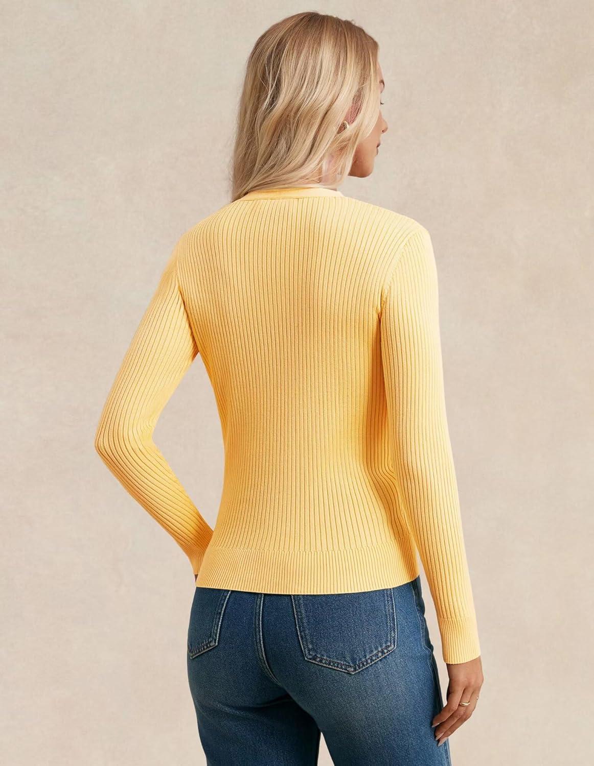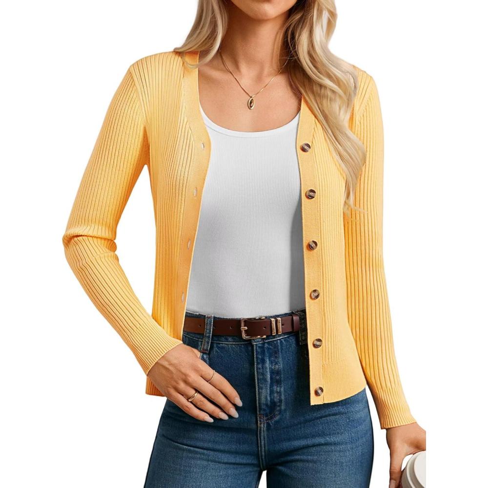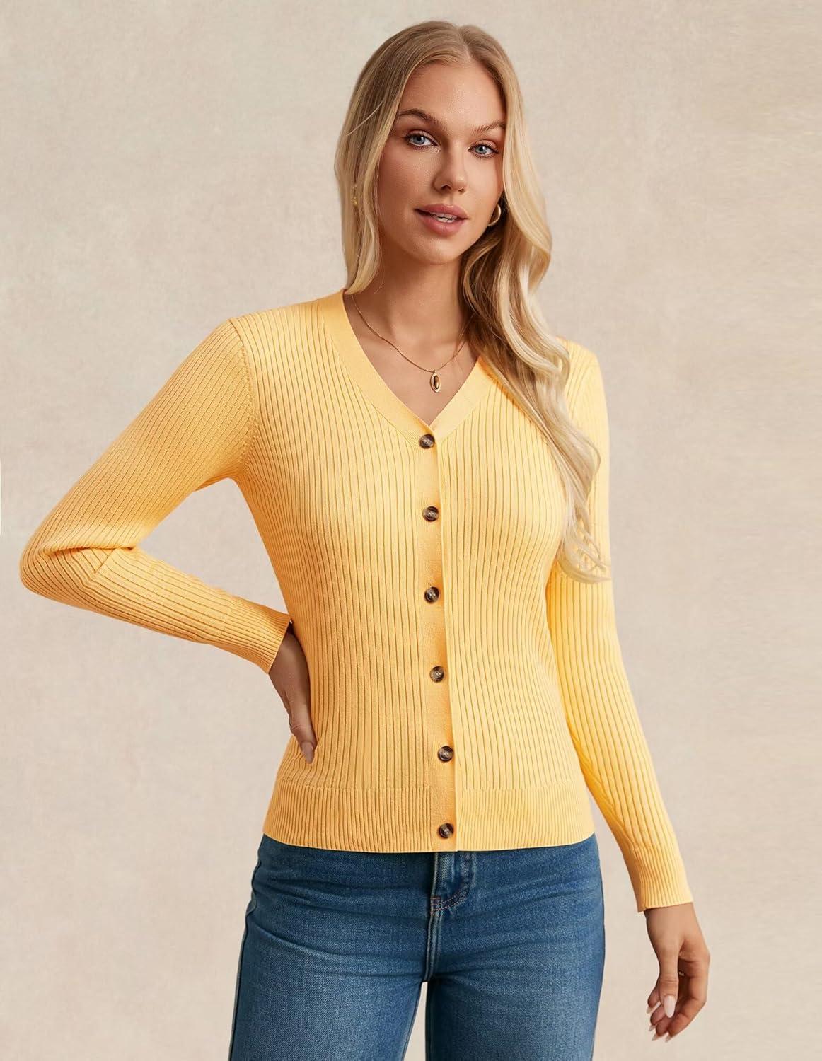 GRACE KARIN Women's Soft Knit Cardigan Sweater - Long Sleeve V-Neck Button Up for Business Casual & Lounge Wear(Mid Yellow)