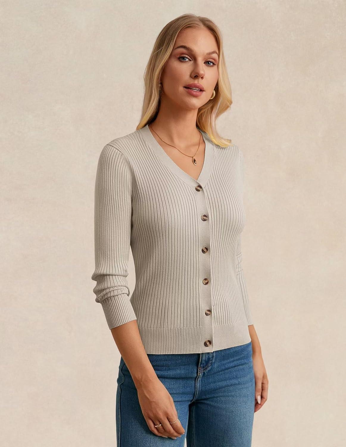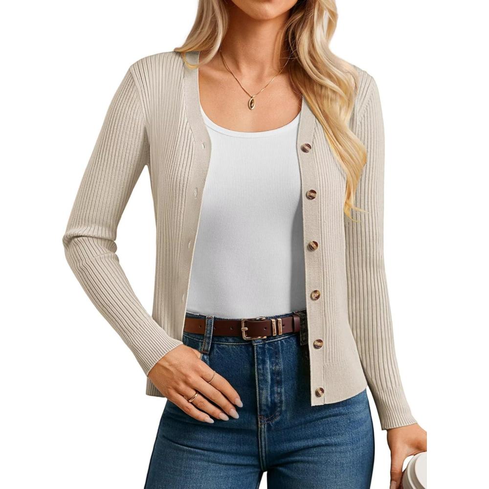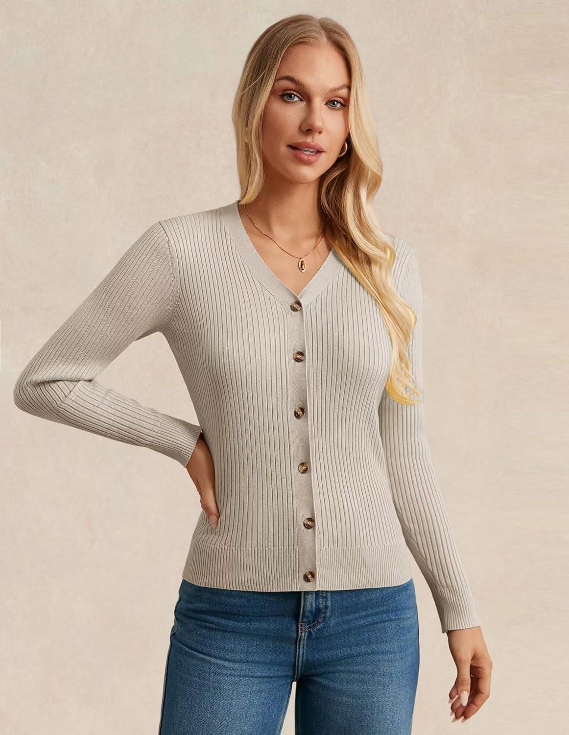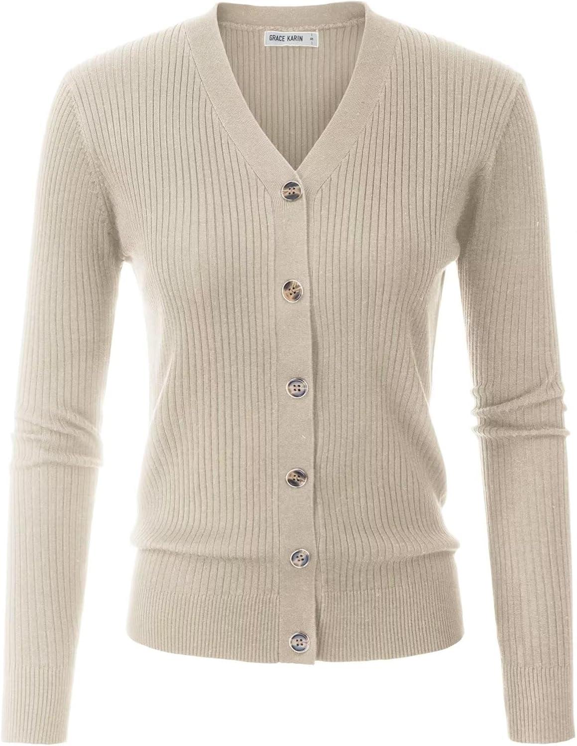 GRACE KARIN Women’s Soft Knit Cardigan Sweater – Long Sleeve V-Neck Button Up for Business Casual & Lounge Wear(Oatmeal)