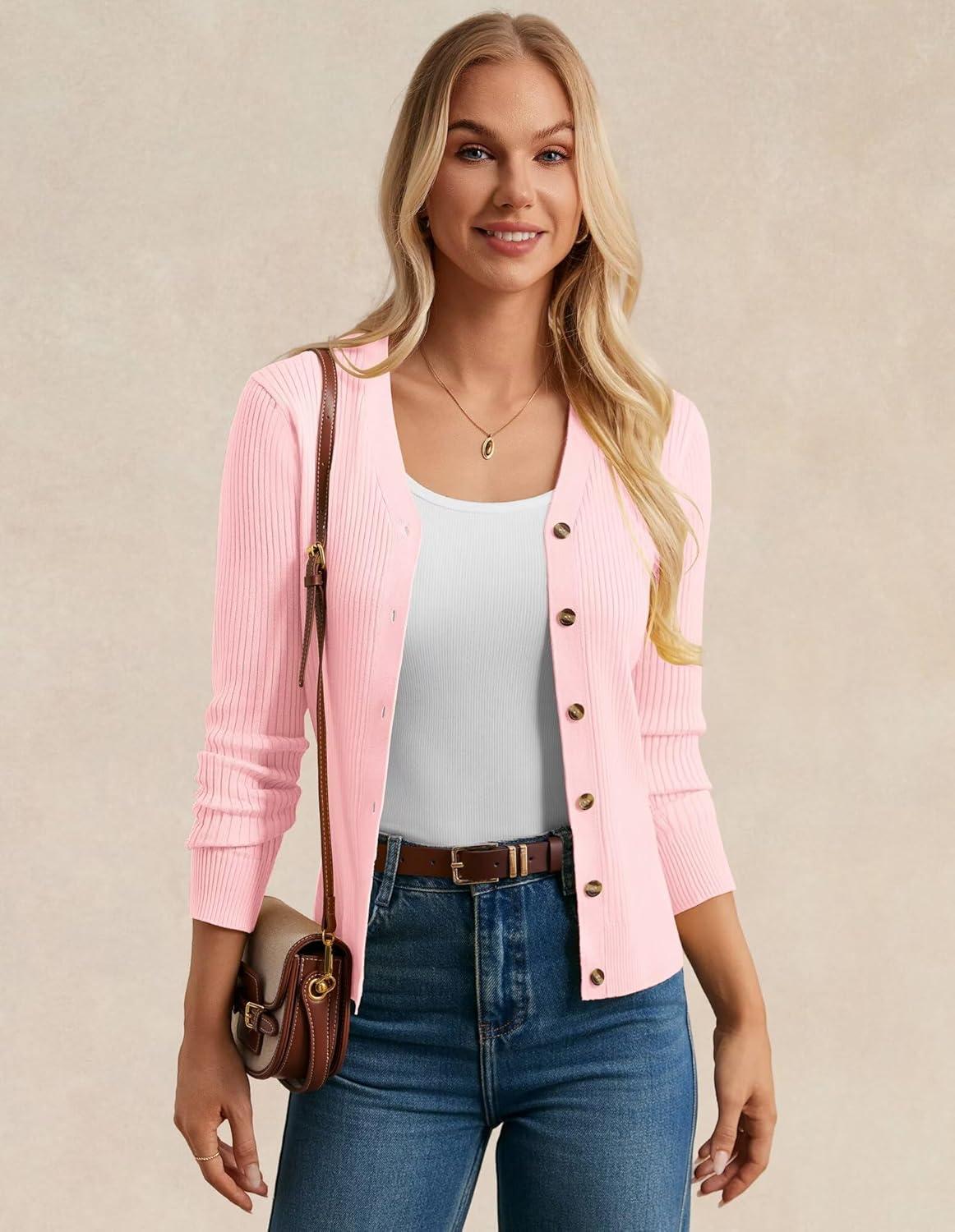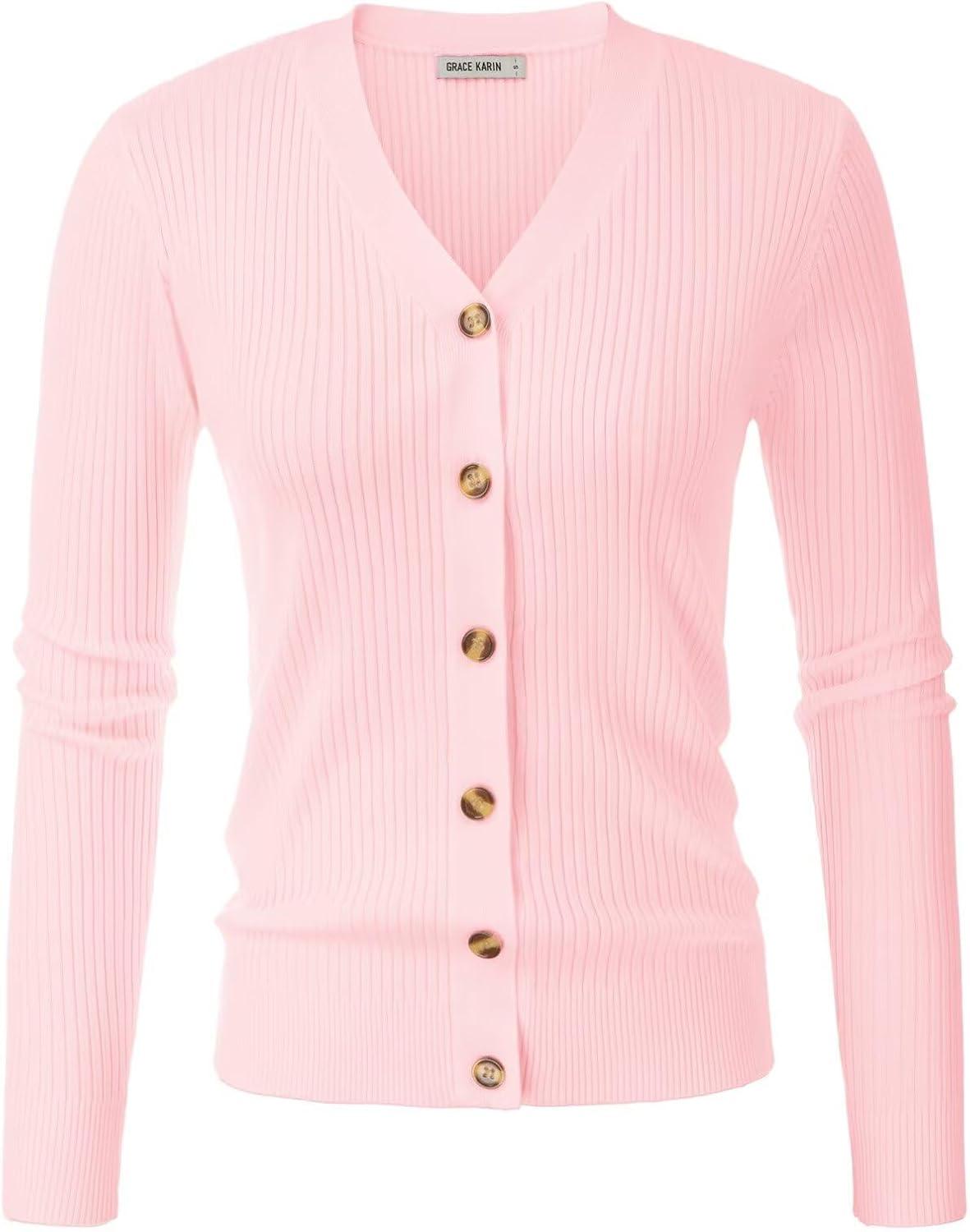 imageGRACE KARIN Womens Soft Knit Cardigan Sweater  Long Sleeve VNeck Button Up for Business Casual ampamp Lounge WearPink