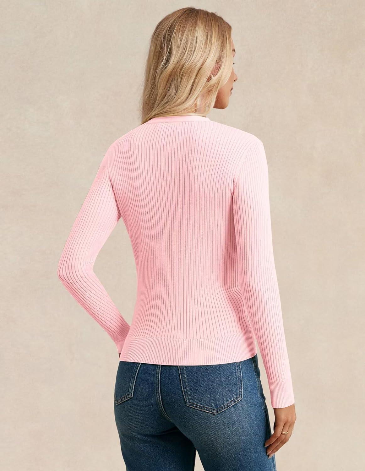 GRACE KARIN Women’s Soft Knit Cardigan Sweater – Long Sleeve V-Neck Button Up for Business Casual & Lounge Wear(Pink)