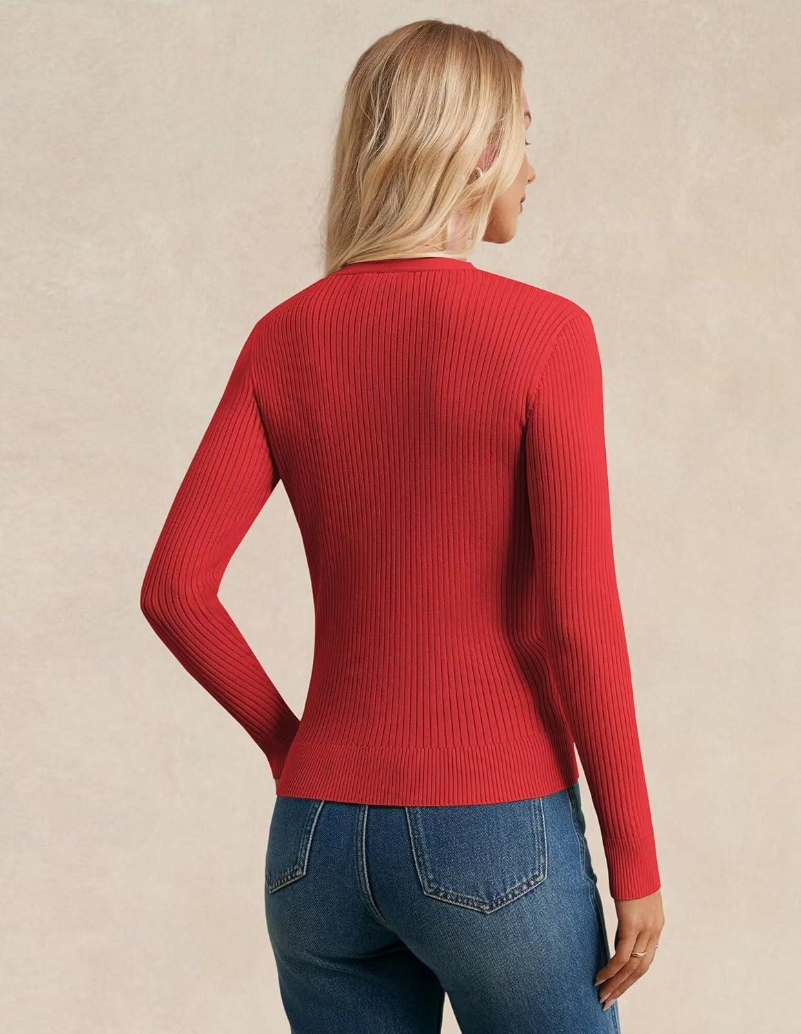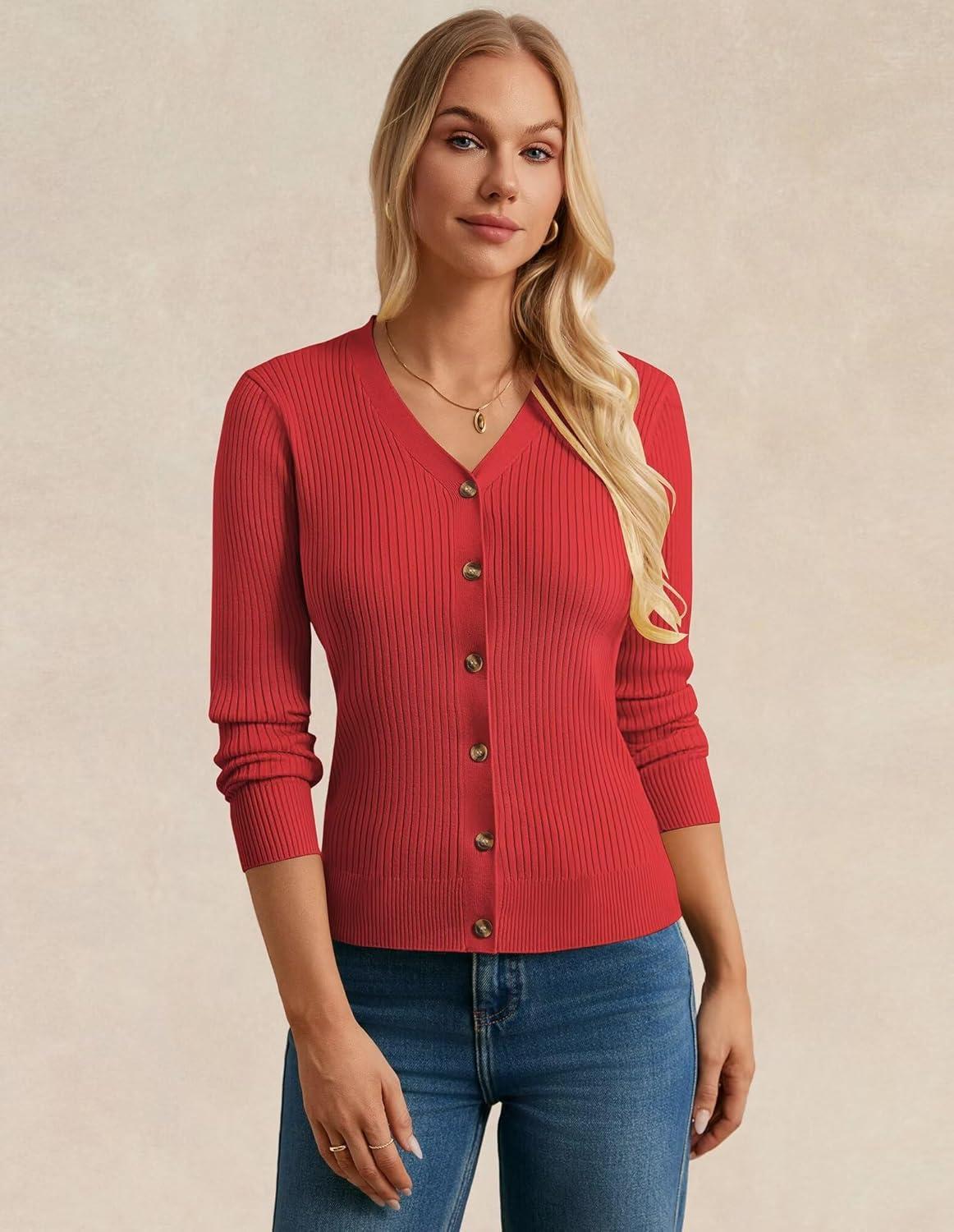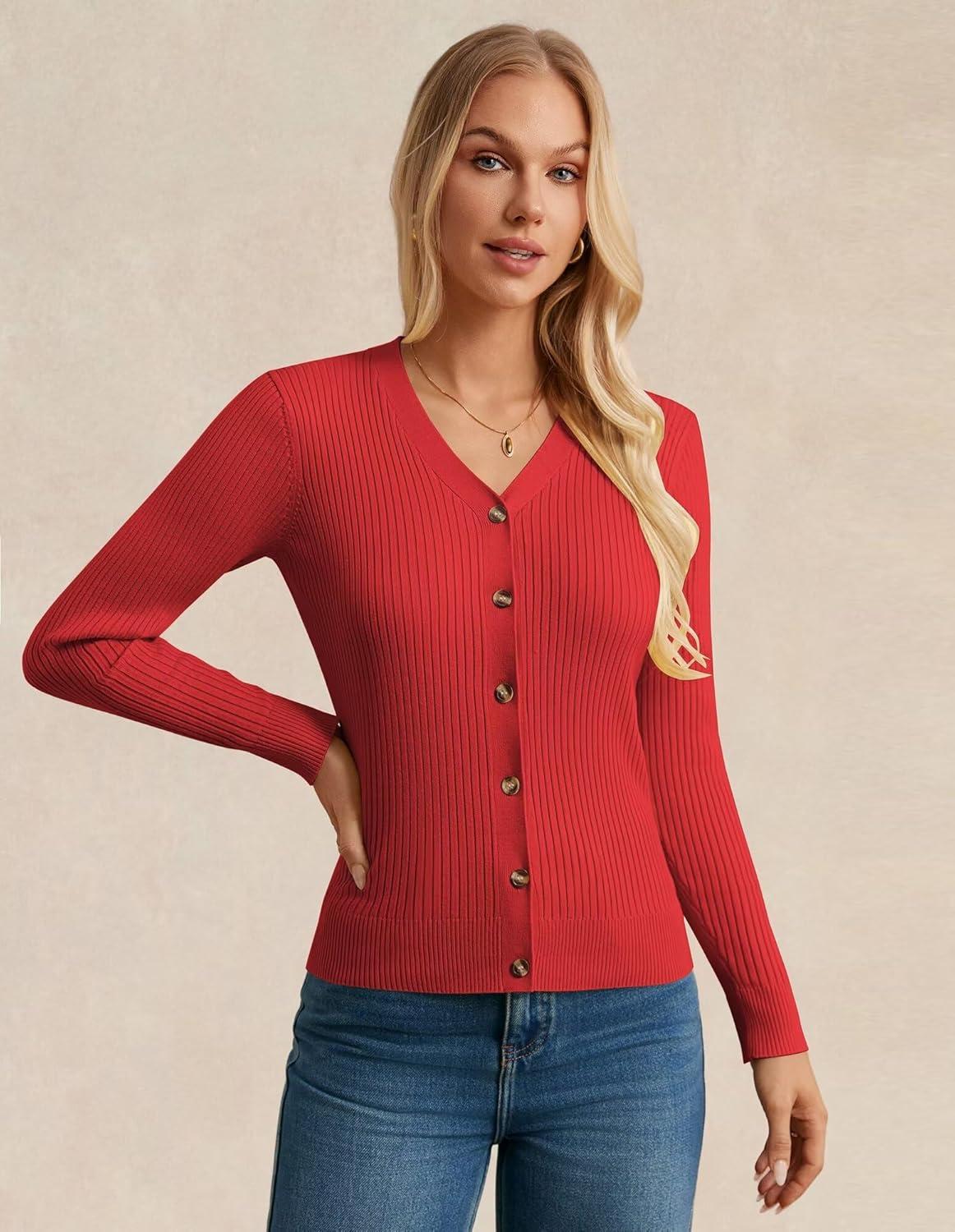 GRACE KARIN Women’s Soft Knit Cardigan Sweater – Long Sleeve V-Neck Button Up for Business Casual & Lounge Wear(Red)