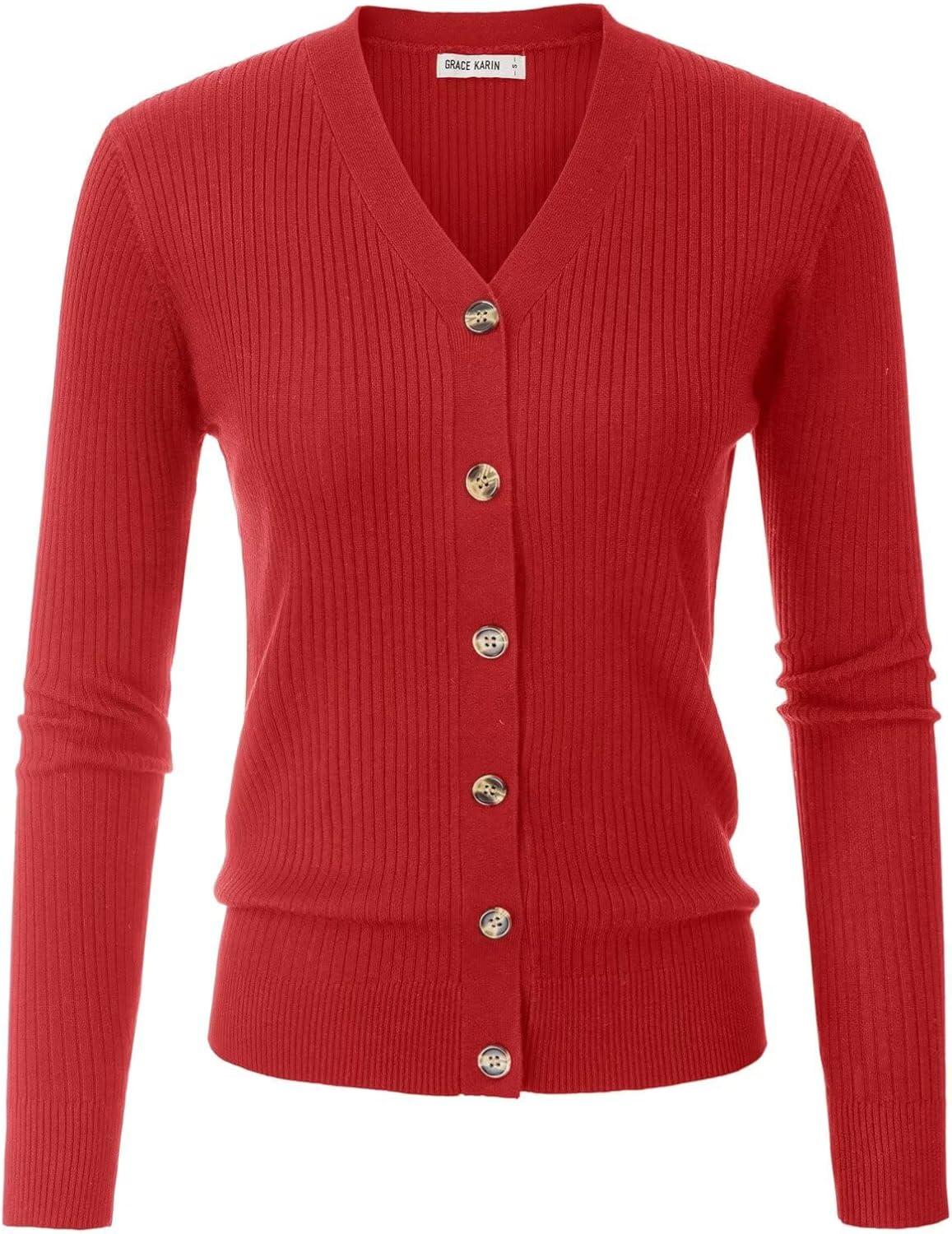 imageGRACE KARIN Womens Soft Knit Cardigan Sweater  Long Sleeve VNeck Button Up for Business Casual ampamp Lounge WearRed