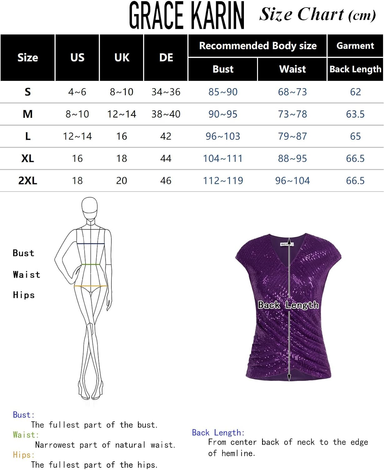 GRACE KARIN Womens Sparkle Sequin Top Shimmer Glitter Blouse Twist Front V Neck Cap Sleeve Club Party ShirtPurple