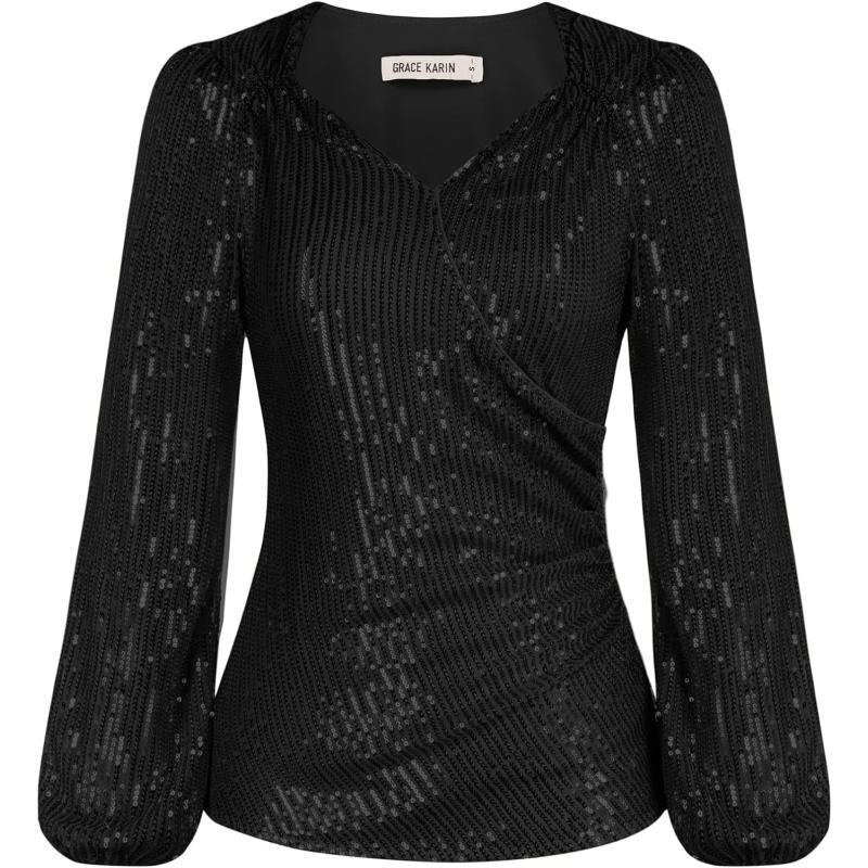 Score big savings on GRACE KARIN Womens Sparkly Sequin Top Long Sleeves Glitter Blouse V Neck Ruched Sparkle Dressy Party Club Tops(Black) during our back-to-school sale. Limited quantities available.