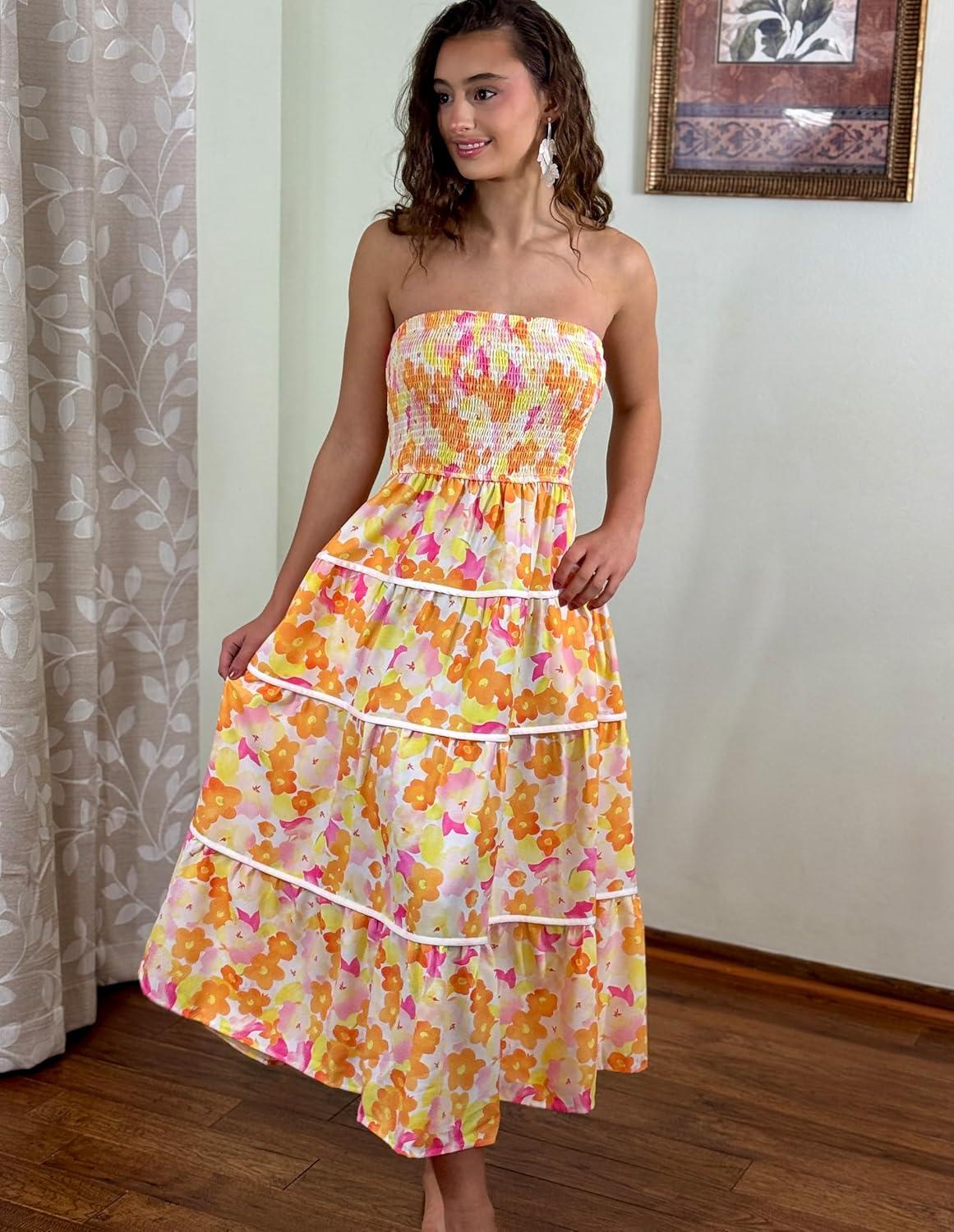 Be the first to review “GRACE KARIN Women’s Strapless Tube Tops Dress 2025 Summer Smocked Tiered Floral Dress Beach Casual Maxi Dress with Pocket(Yellow White Floral)” Cancel reply