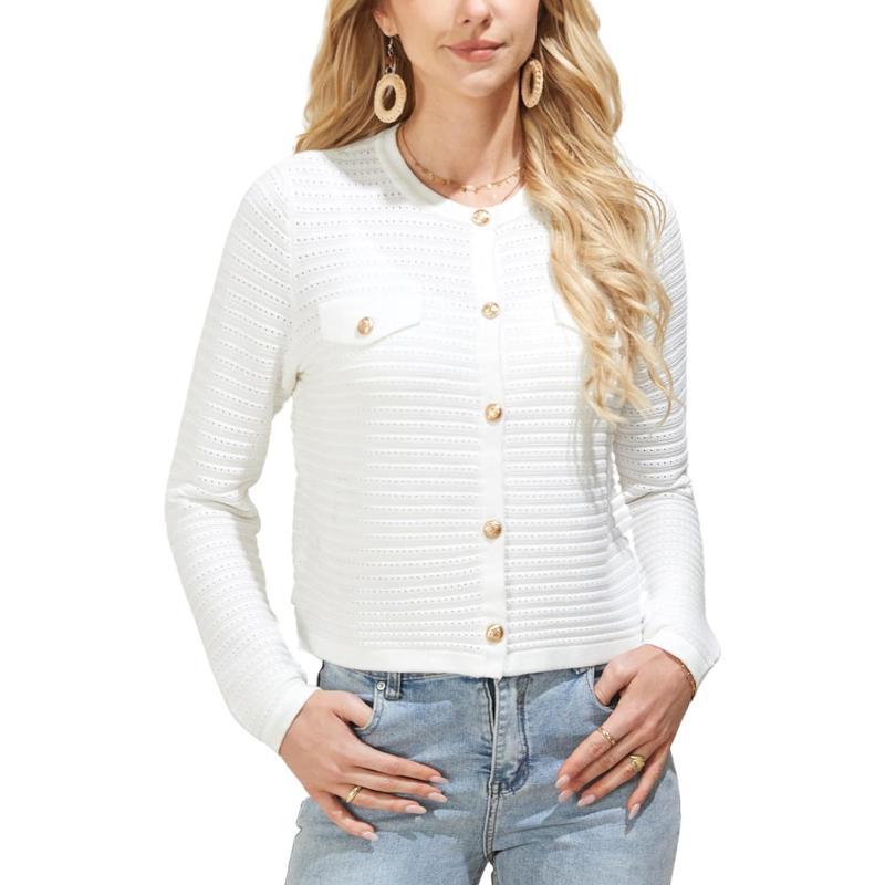 GRACE KARIN Women's Striped Cardigans 2024 Spring Open Front Button Down Knit Sweater Lady Outerwear(White)
