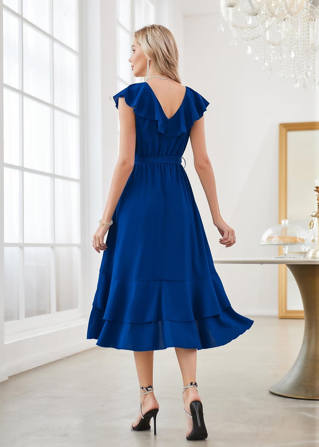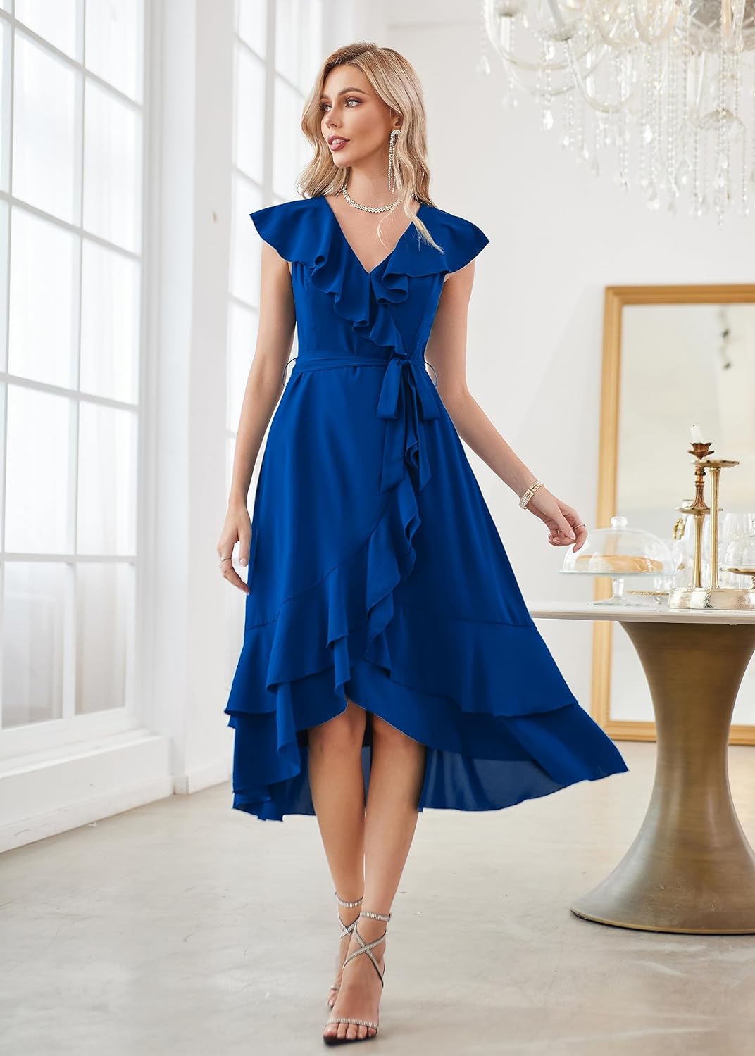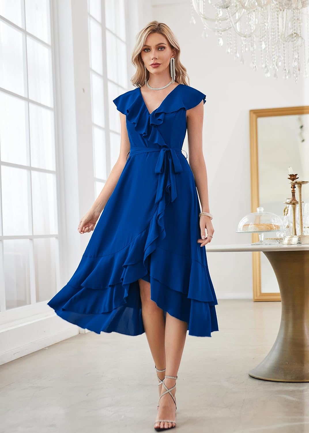 GRACE KARIN Womens Summer Bridesmaid Dresses for Wedding V Neck Ruffle Party Cocktail Dresses Chiffon Flowy Wrap DressRoyal Blue2531