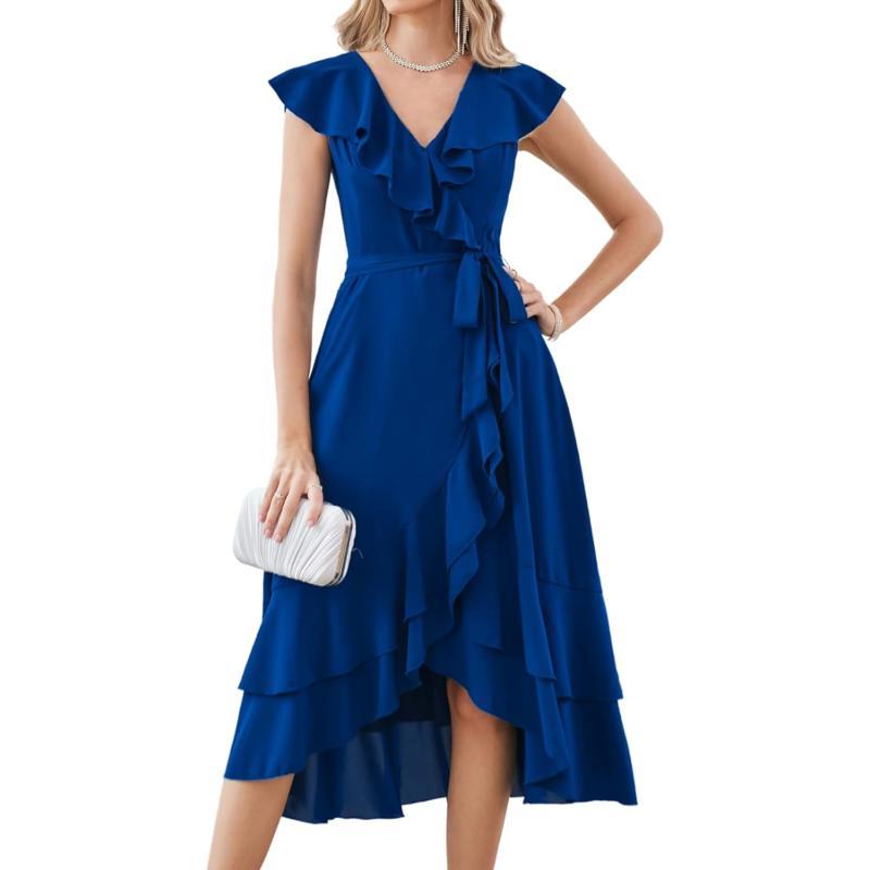 GRACE KARIN Women's Summer Bridesmaid Dresses for Wedding V Neck Ruffle Party Cocktail Dresses Chiffon Flowy Wrap Dress(Royal Blue-2531)