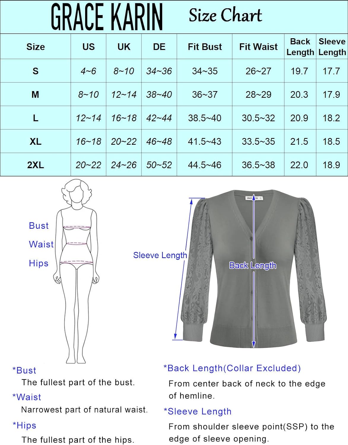 Lace Sleeve Tight Waist Sweater V Neck Latern Sleeve Cardigan Feature: