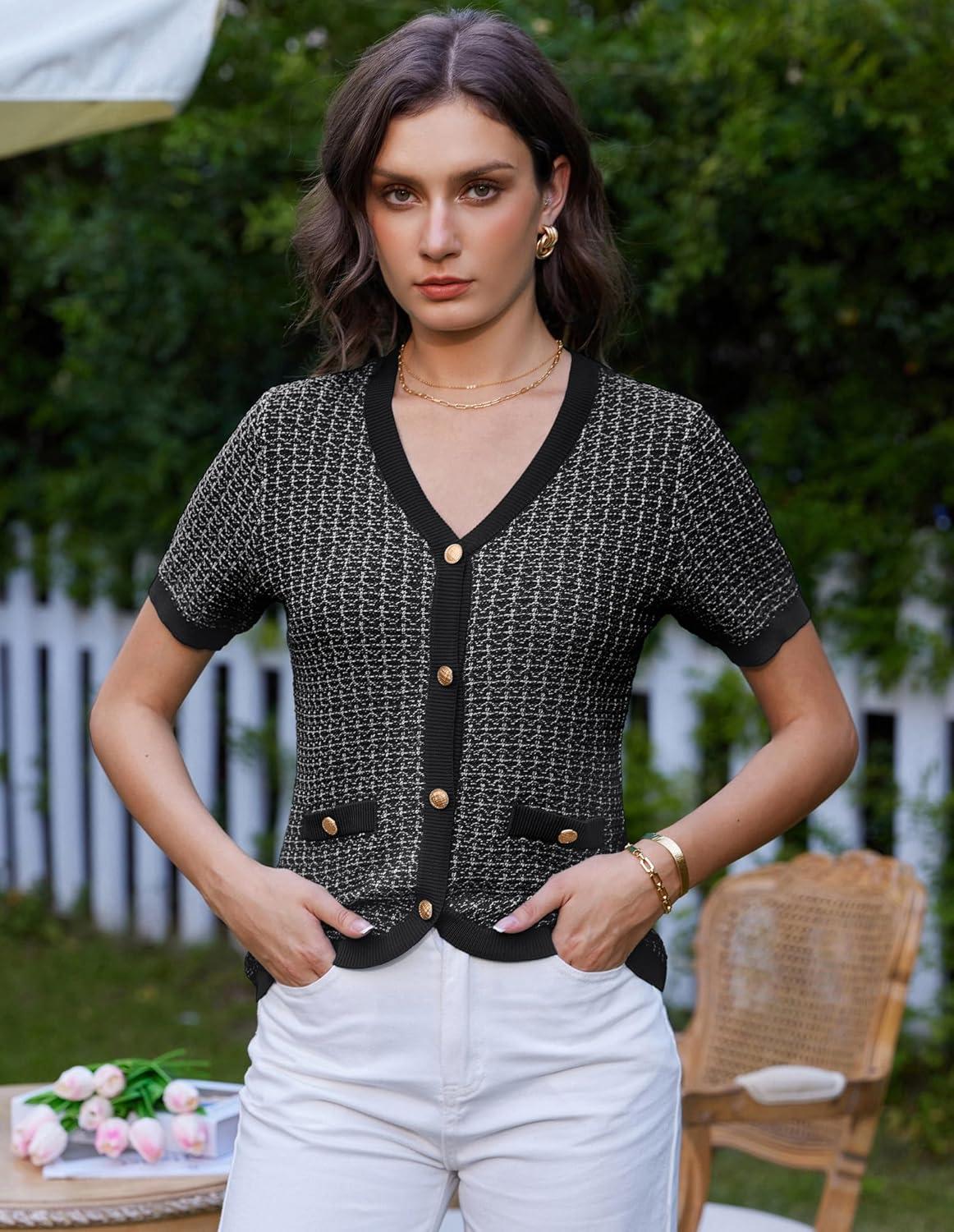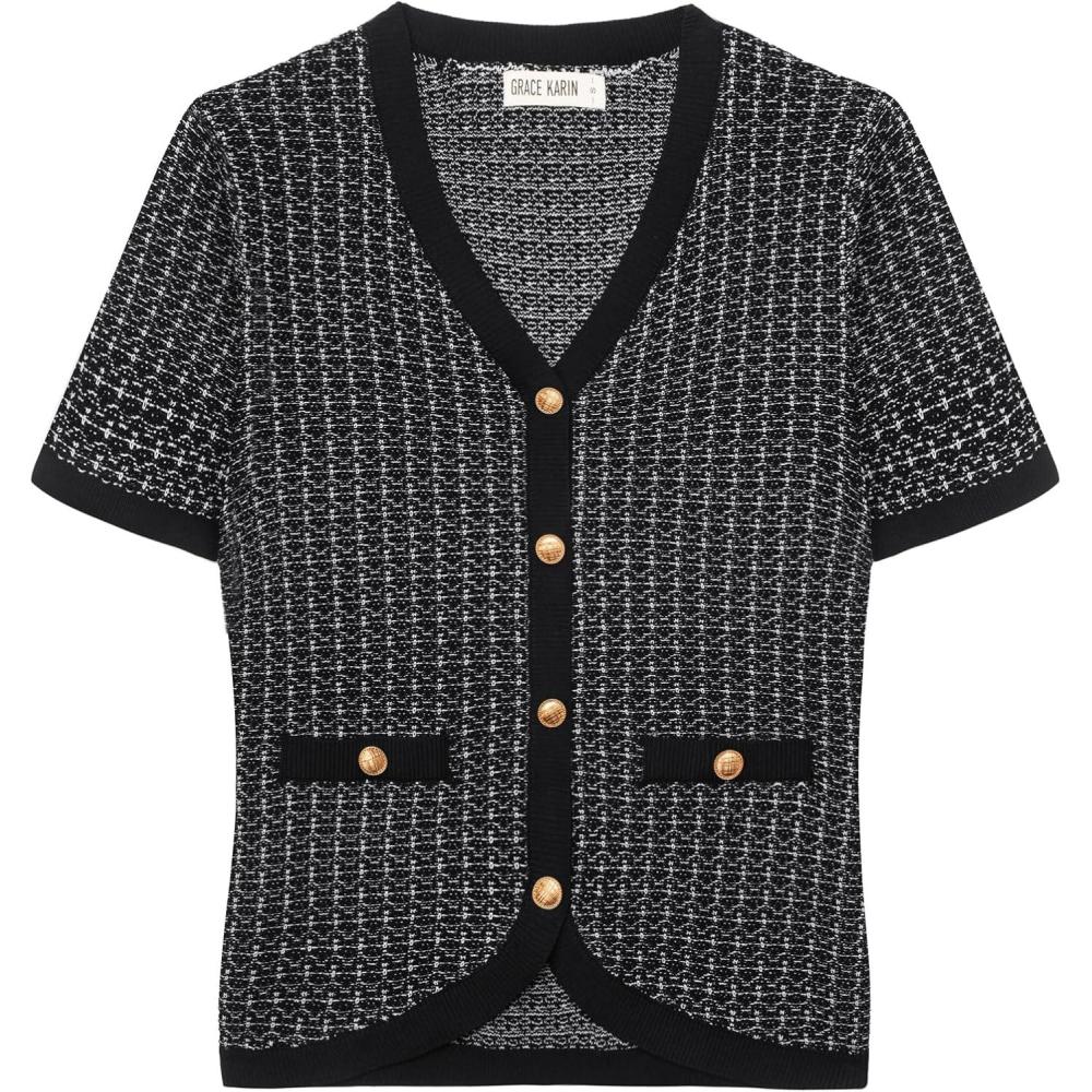 Save big on GRACE KARIN Womens Summer Cardigan Sweater 2025 Button Down Short Sleeve Cropped Lightweight V Neck Elegant Tweed Tops(Black) and accessories during our BOGO sale. Buy one, get one 50% off!