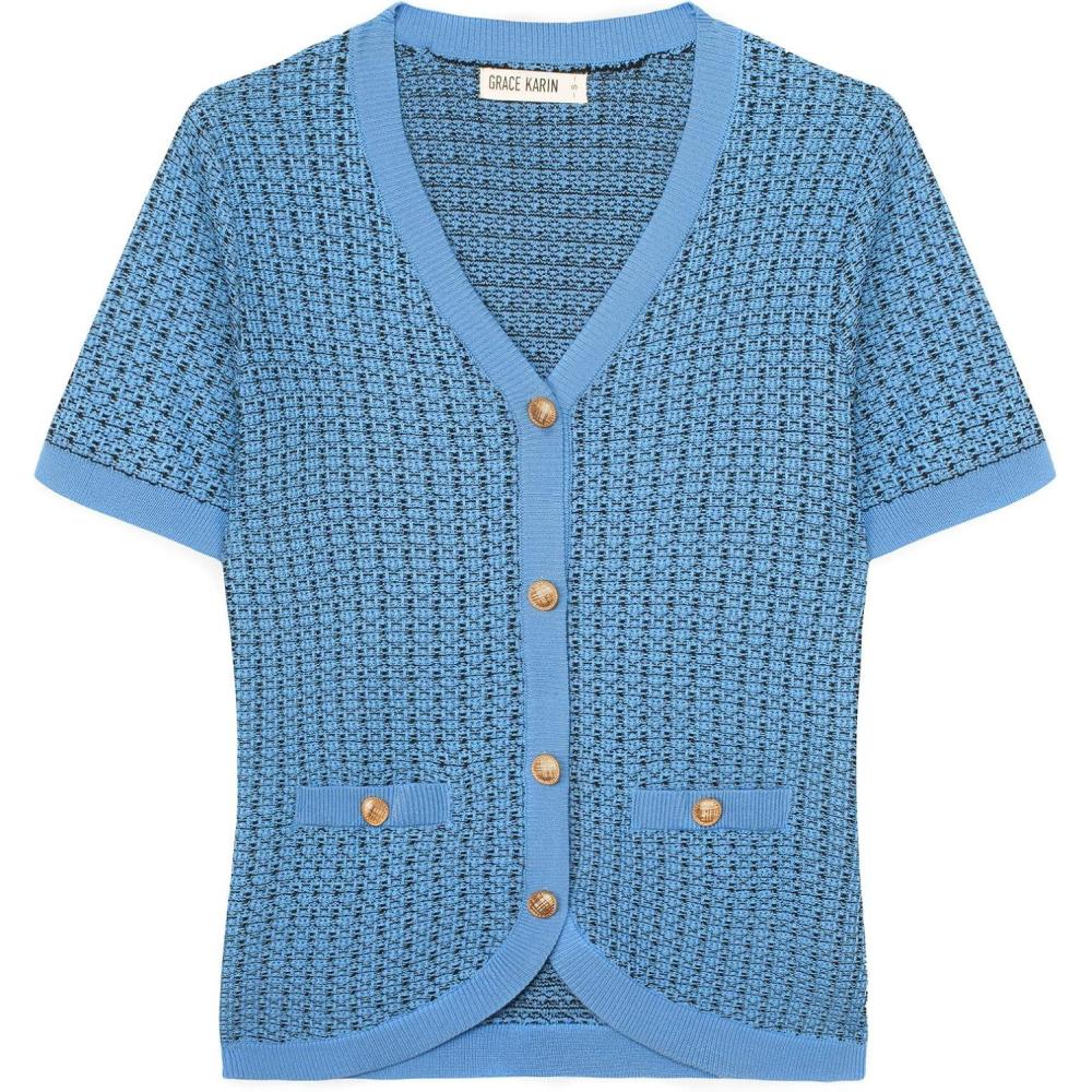 Be the first to review “GRACE KARIN Womens Summer Cardigan Sweater 2025 Button Down Short Sleeve Cropped Lightweight V Neck Elegant Tweed Tops(Blue)” Cancel reply