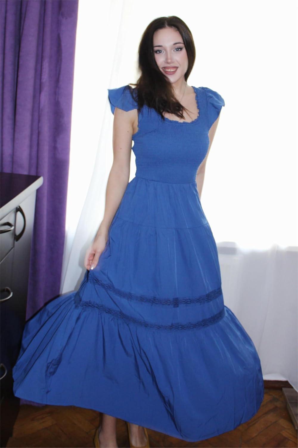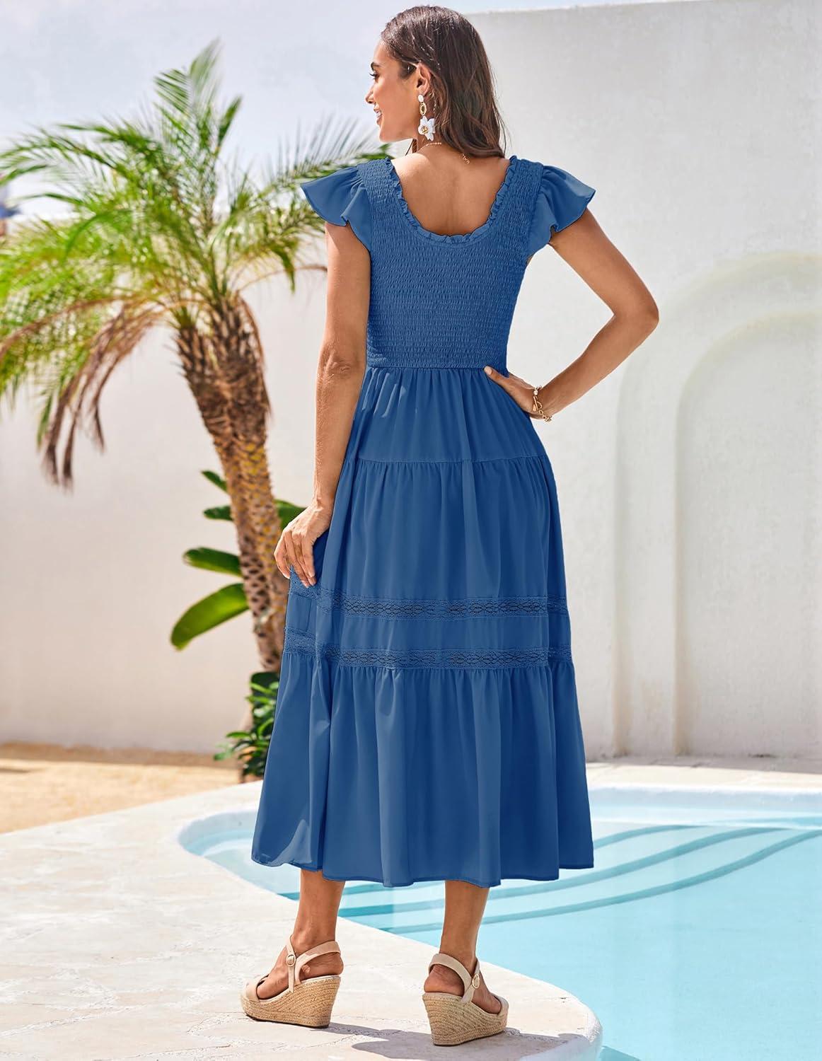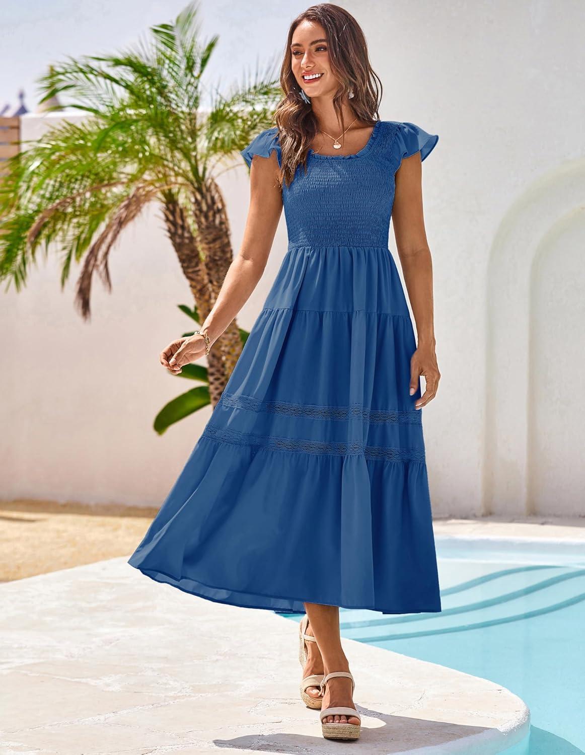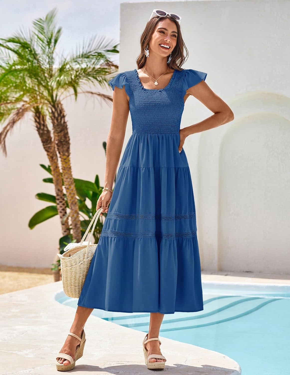 Don’t break the bank! Get the GRACE KARIN Womens Summer Dress Casual 2025 Flutter Sleeve Square Neck Smocked Boho Beach Dresses Tiered Midi Long Sundress(Blue) you want at a price you can afford during our markdown sale.