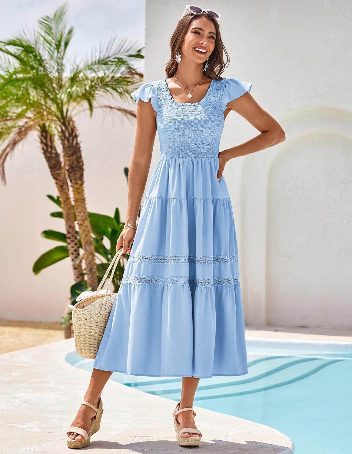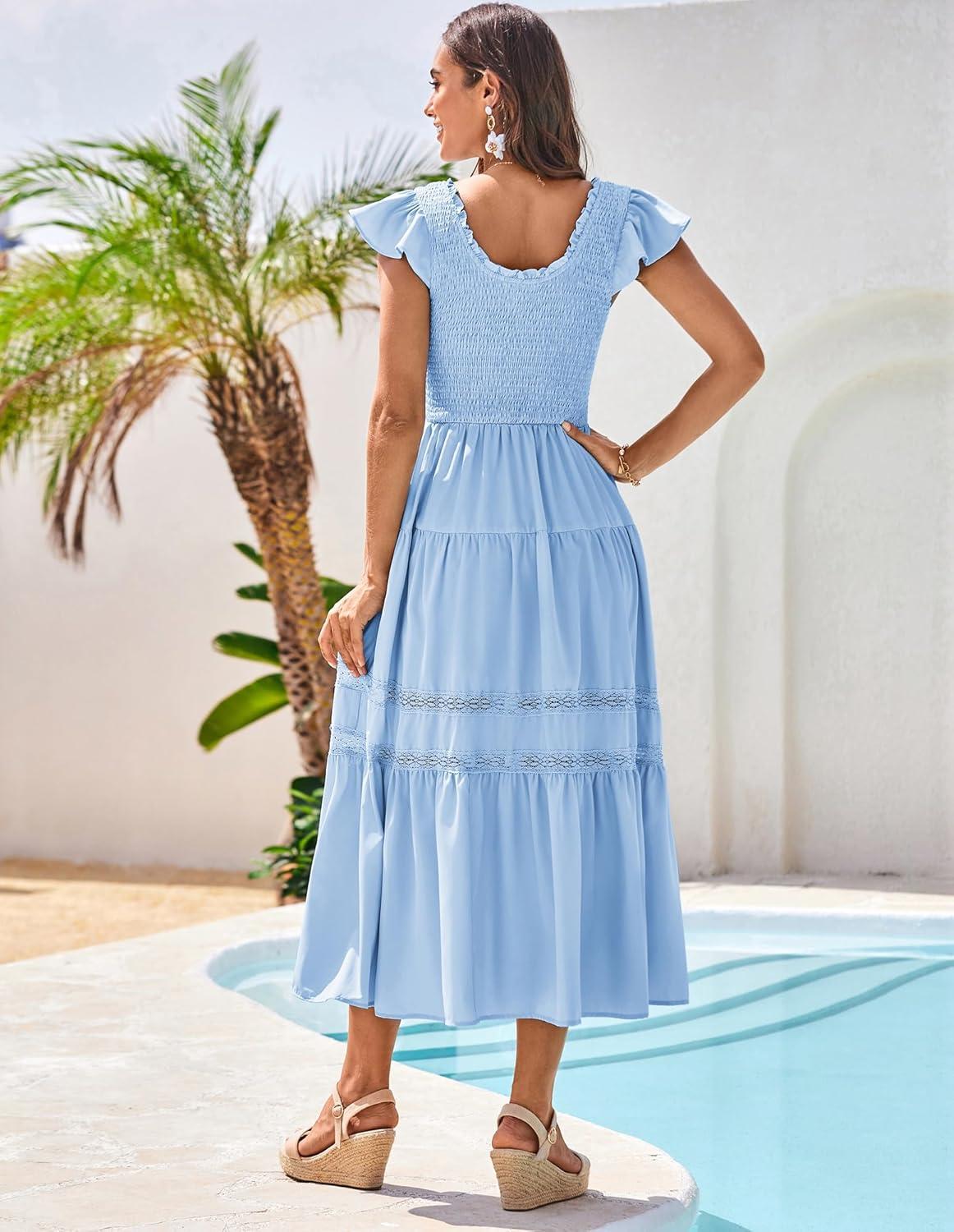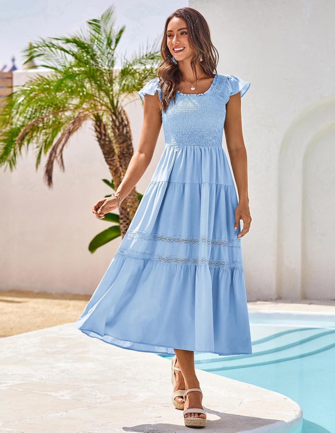 Be the first to review “GRACE KARIN Womens Summer Dress Casual 2025 Flutter Sleeve Square Neck Smocked Boho Beach Dresses Tiered Midi Long Sundress(Light Blue)” Cancel reply