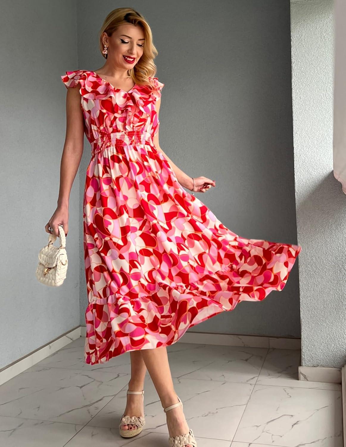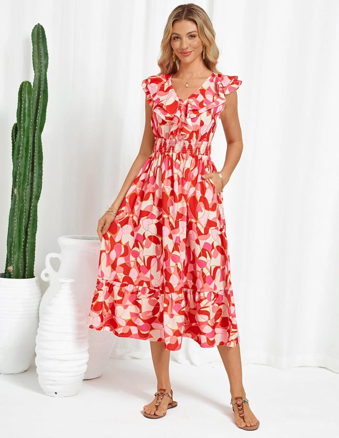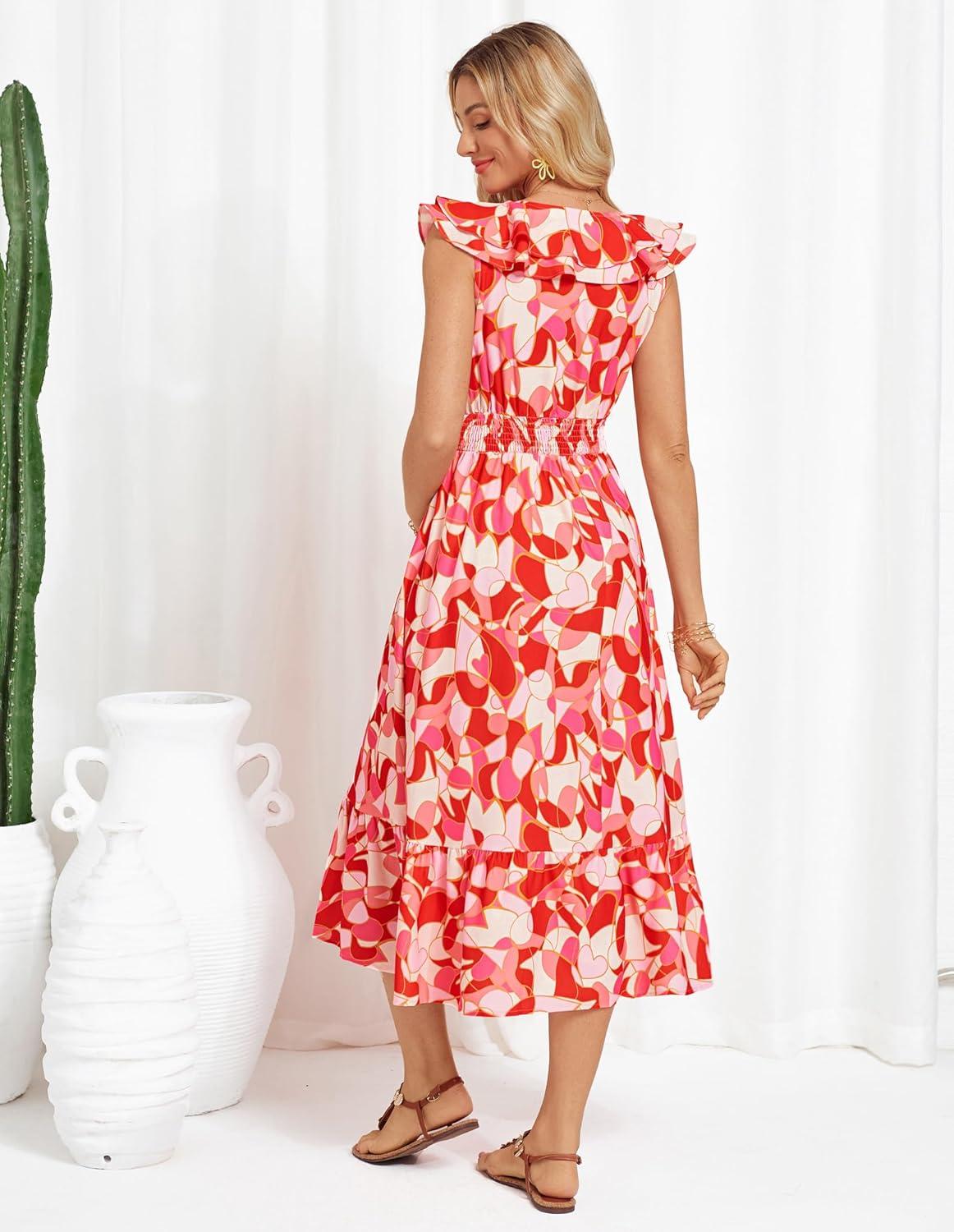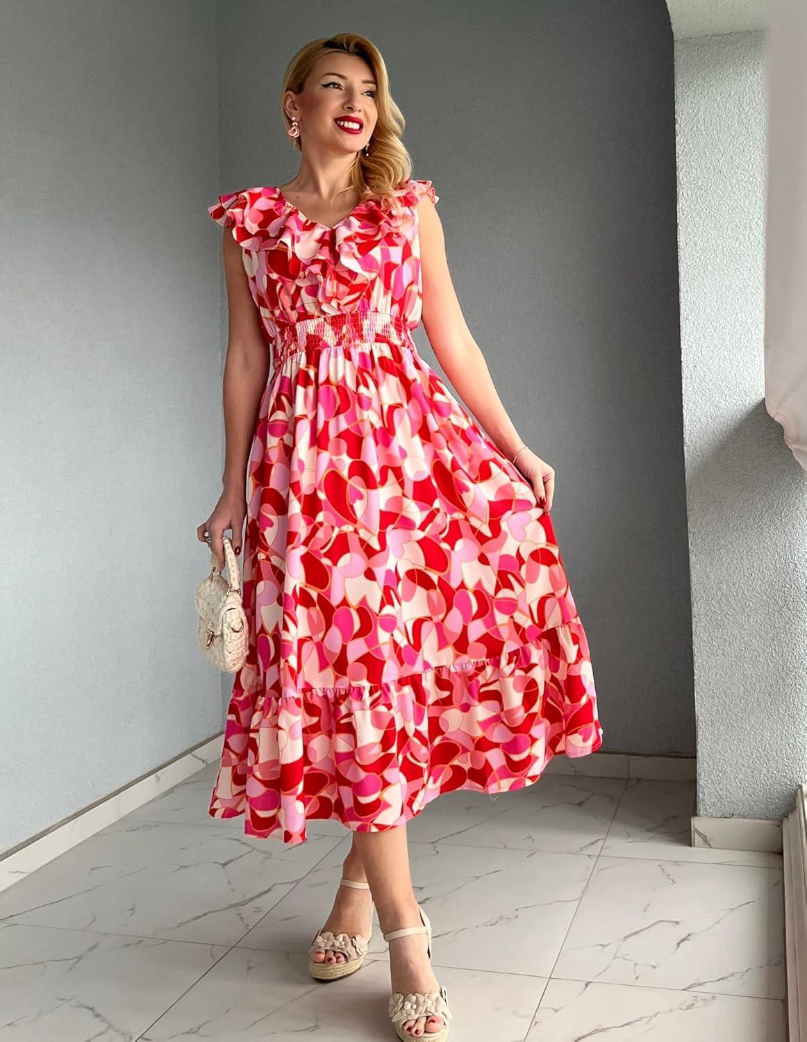 Be the first to review “GRACE KARIN Women’s Summer Dress Casual Boho Beach V Neck Smocked Waist Front Ruffle Floral Maxi Dresses with Pockets(Red Pink Floral)” Cancel reply