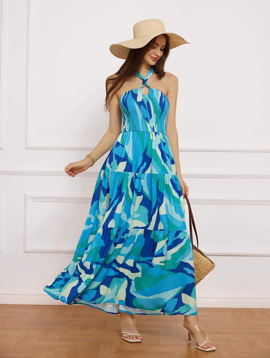 Be the first to review “GRACE KARIN Women’s Summer Dresses 2025 Halter Neck Sleeveless Smocked Backless Cut Out Floral Flowy A Line Maxi Dress(Blue Green)” Cancel reply