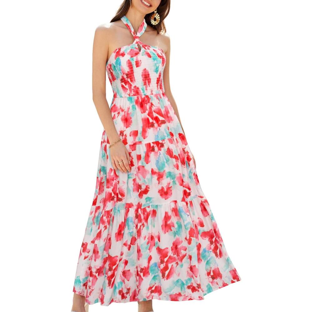 Be the first to review “GRACE KARIN Women’s Summer Dresses 2025 Halter Neck Sleeveless Smocked Backless Cut Out Floral Flowy A Line Maxi Dress(Pink Green)” Cancel reply
