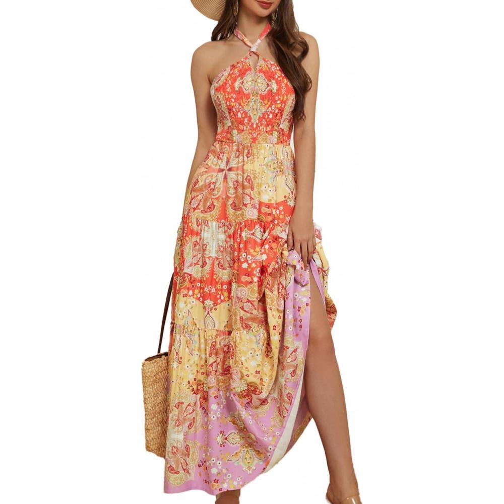 Be the first to review “GRACE KARIN Women’s Summer Dresses 2025 Halter Neck Sleeveless Smocked Backless Cut Out Floral Flowy A Line Maxi Dress(Purple Yellow Orange)” Cancel reply