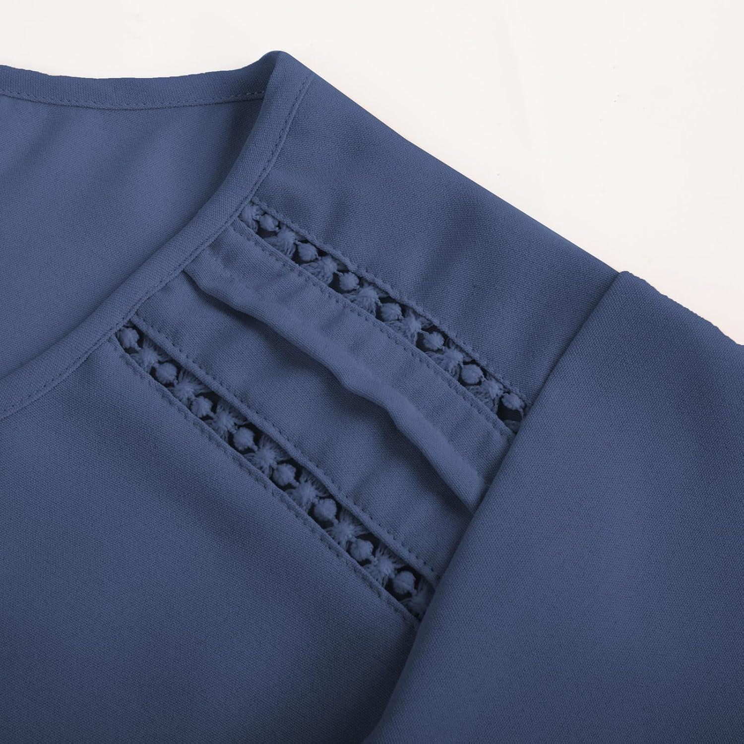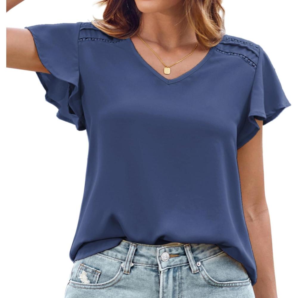 GRACE KARIN Womens Summer Dressy Casual Tops Ruffle Short Sleeve V Neck Loose Solid Tunic Blouses 2025 Trendy(Gray Blue)
