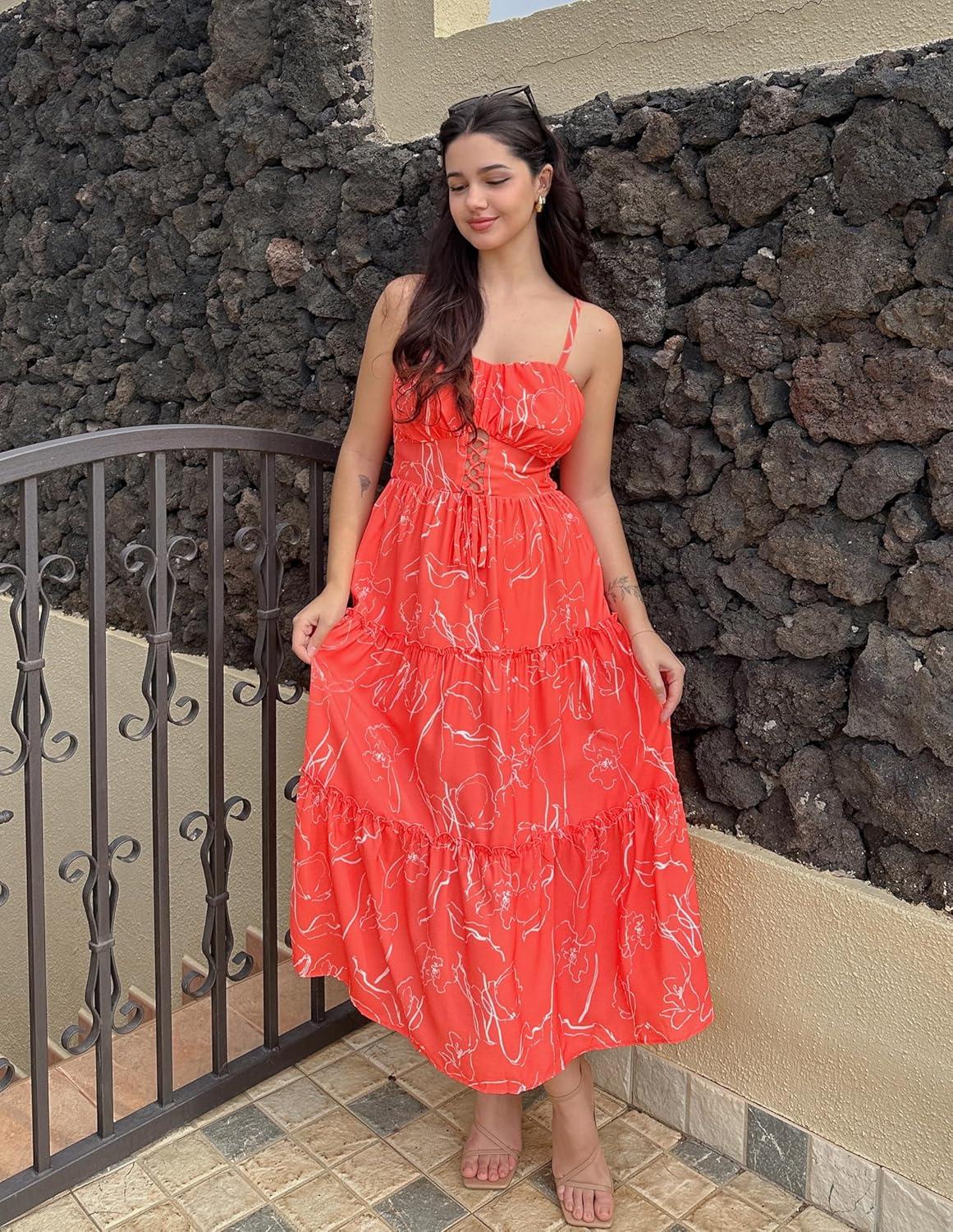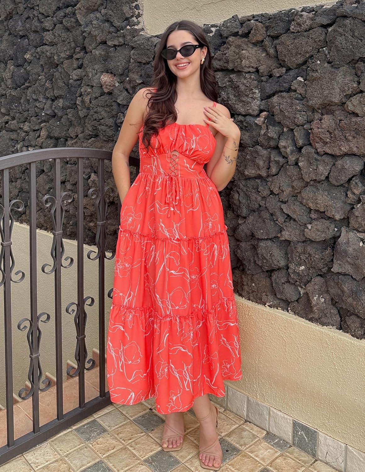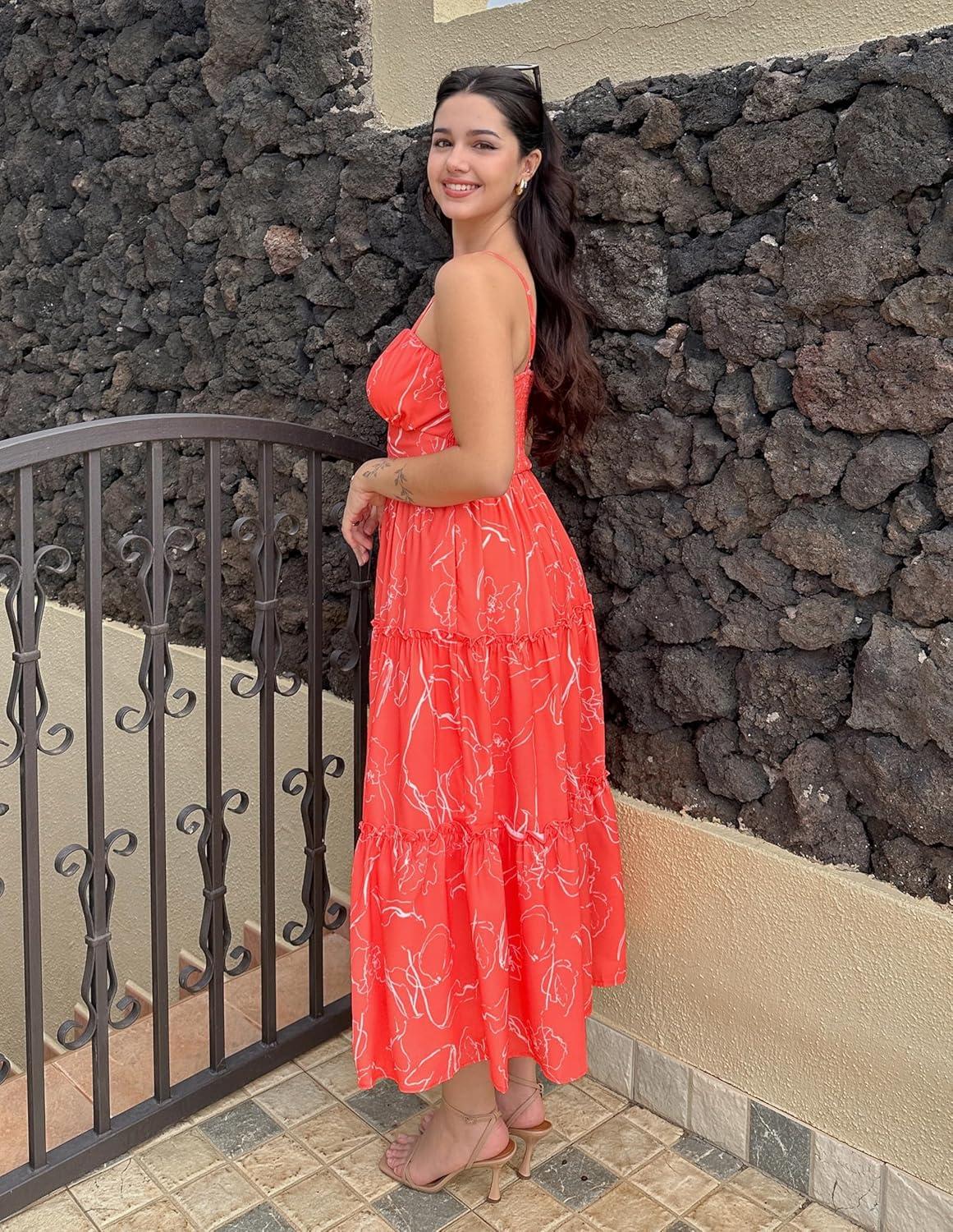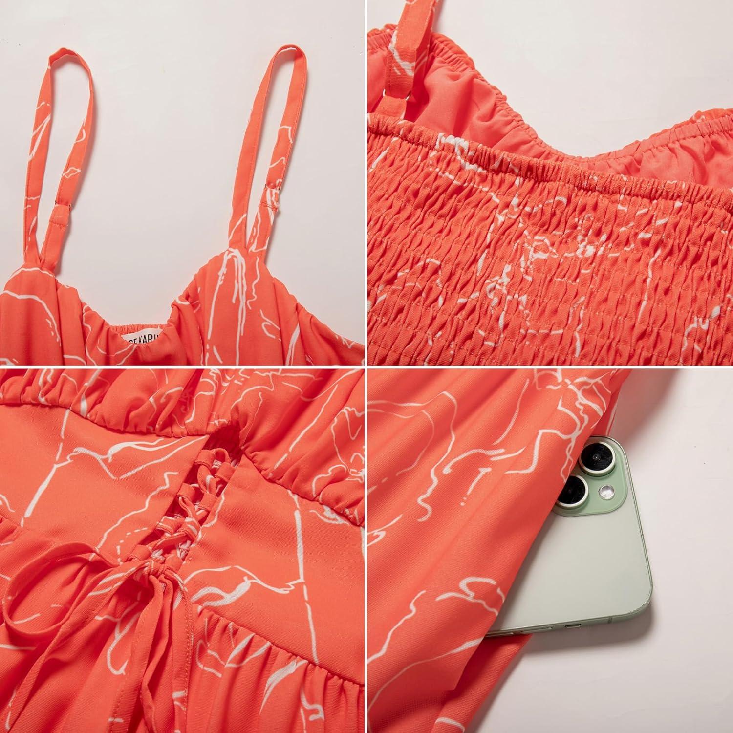 Don’t miss out on our limited-time offer: get a free {accessory} with your purchase of GRACE KARIN Women’s Summer Floral Dress 2025 Spaghetti Strap Smocked Tiered Casual Boho Maxi Long Sundress with Pockets(Orange Floral).
