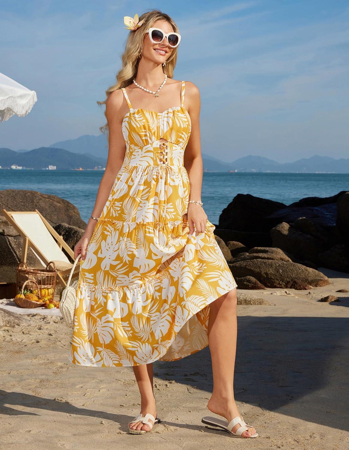 Get the GRACE KARIN Women’s Summer Floral Dress 2025 Spaghetti Strap Smocked Tiered Casual Boho Maxi Long Sundress with Pockets(Yellow Floral) you want at a price you can afford with our markdown sale.