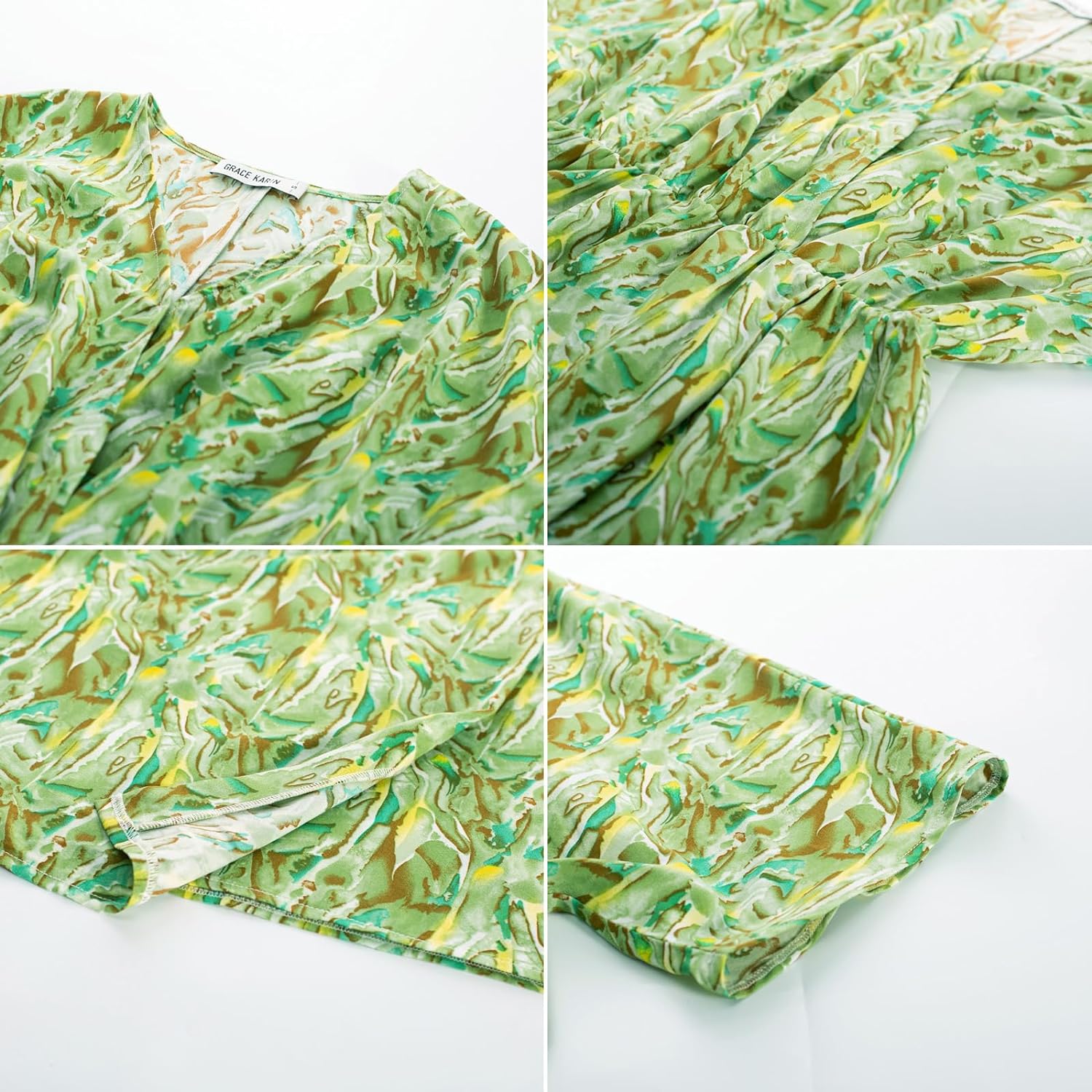 Be the first to review “GRACE KARIN Womens Summer Floral Dress Casual Wrap V Neck Short Sleeve Empire Waist A-Line Flowy Beach Boho Mini Dresses(Green Abstract Floral)”