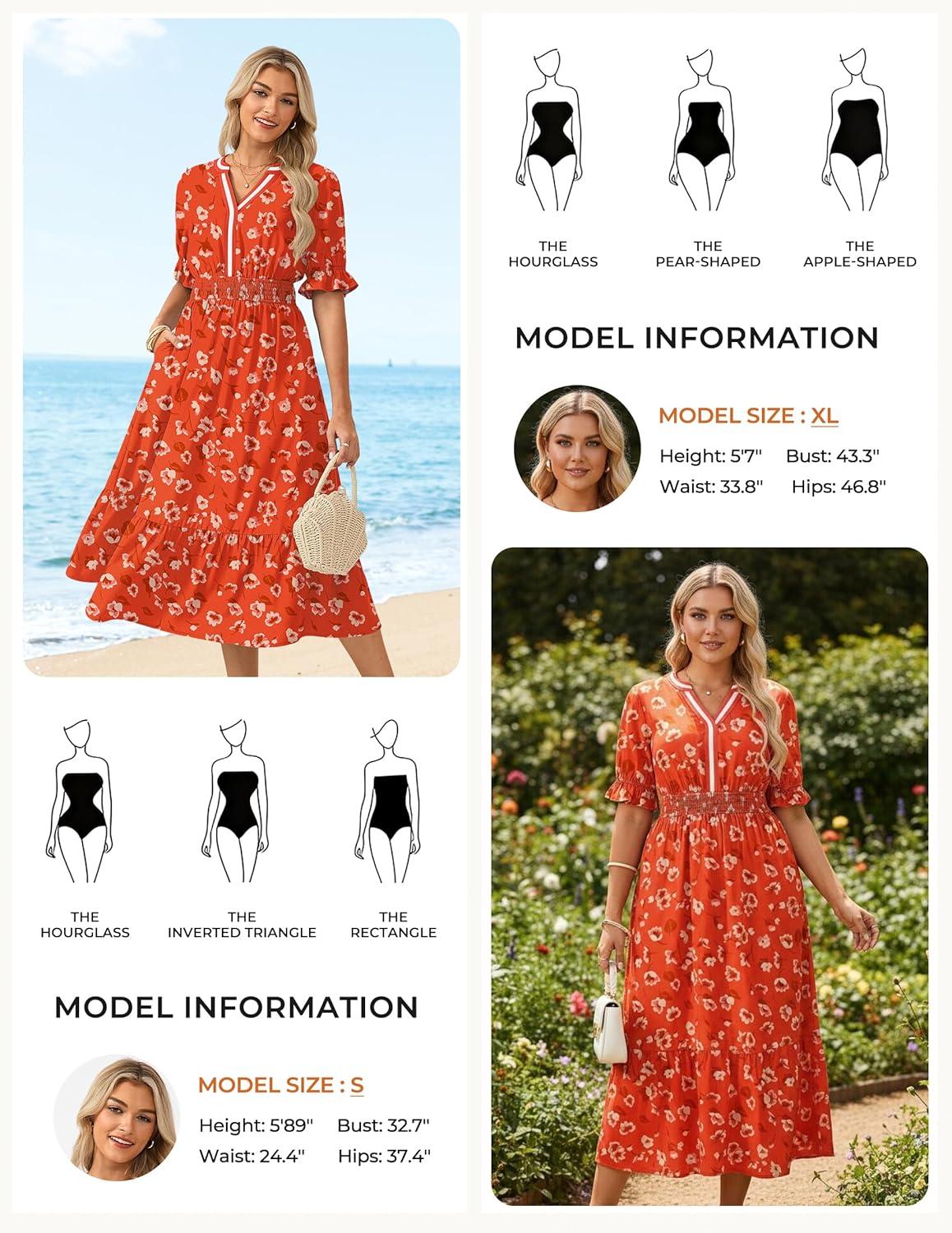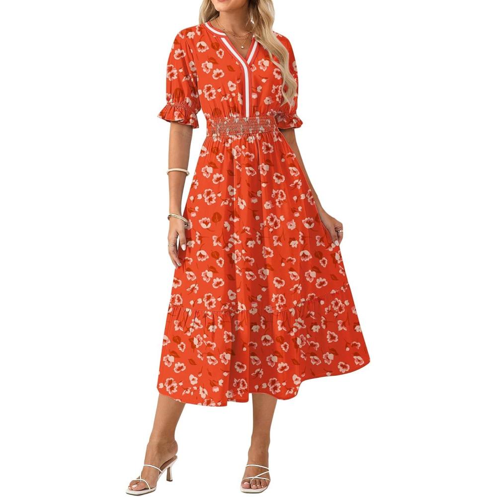 GRACE KARIN Womens Summer Floral Maxi Dress 2026 Casual Ruffle Short Sleeve Boho Dress A Line Flowy Dresses with Pockets(Orange Flower)