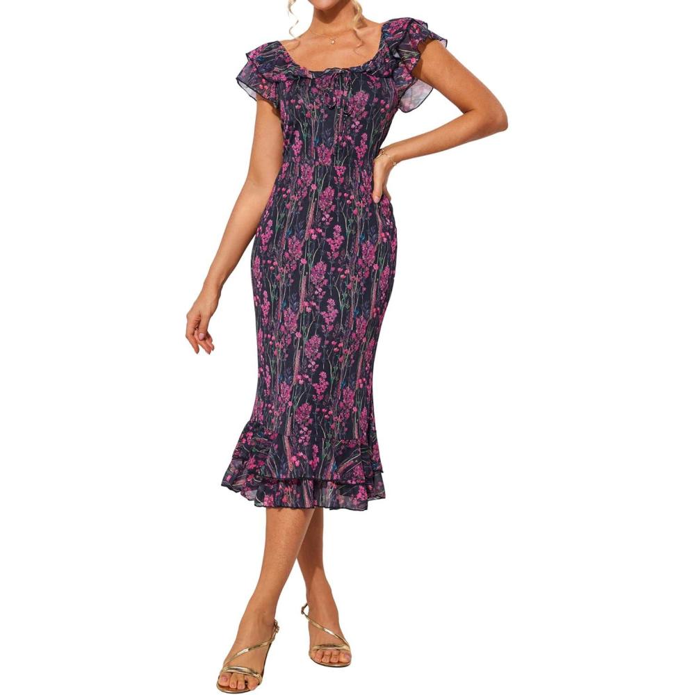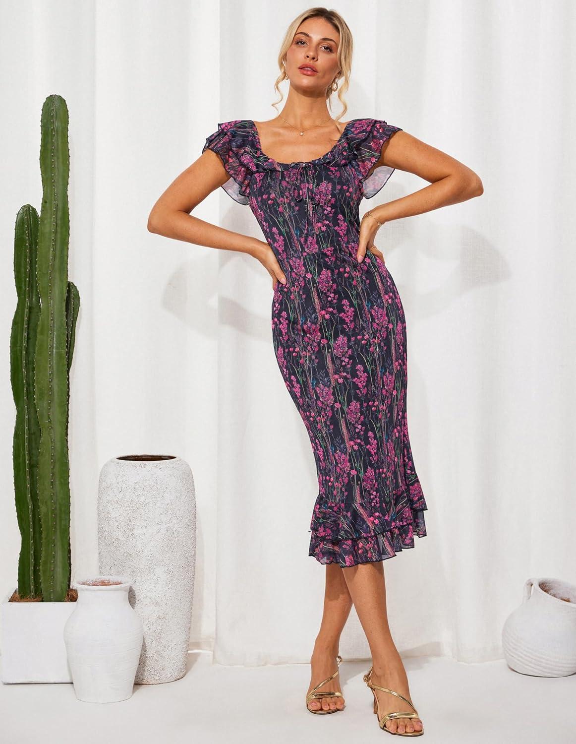 Don’t miss out on our limited-time offer: buy GRACE KARIN Women’s Summer Floral Midi Dress Wedding Guest Party Dress Mermaid Bodycon Mesh Ruffle Dress(Black Purple Flowers), get a free {accessory}!