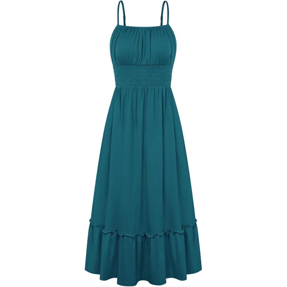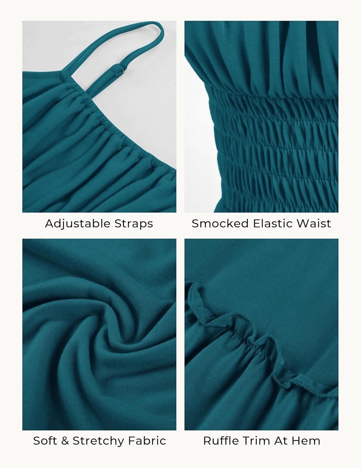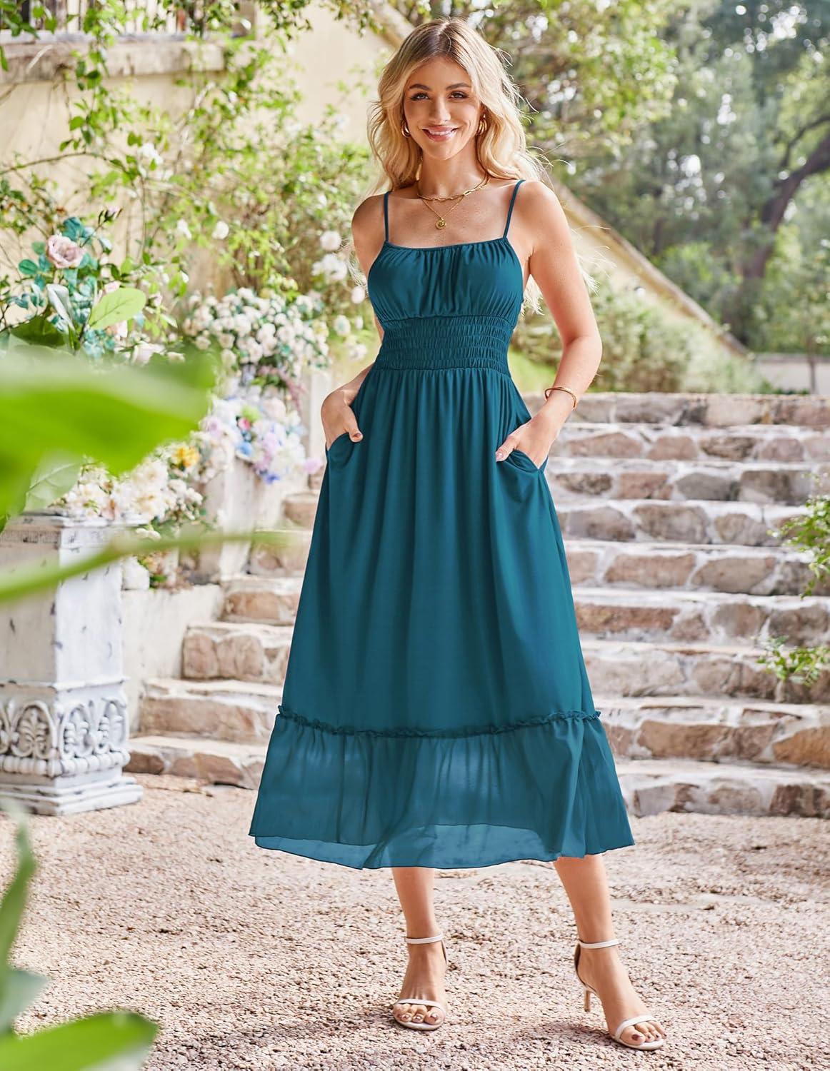 image:imageGRACE KARIN Womens Summer Maxi Dress 2026Smocked Ruched Bust Sundress with Adjustable Straps amp PocketsBeach Vacation DressTeal